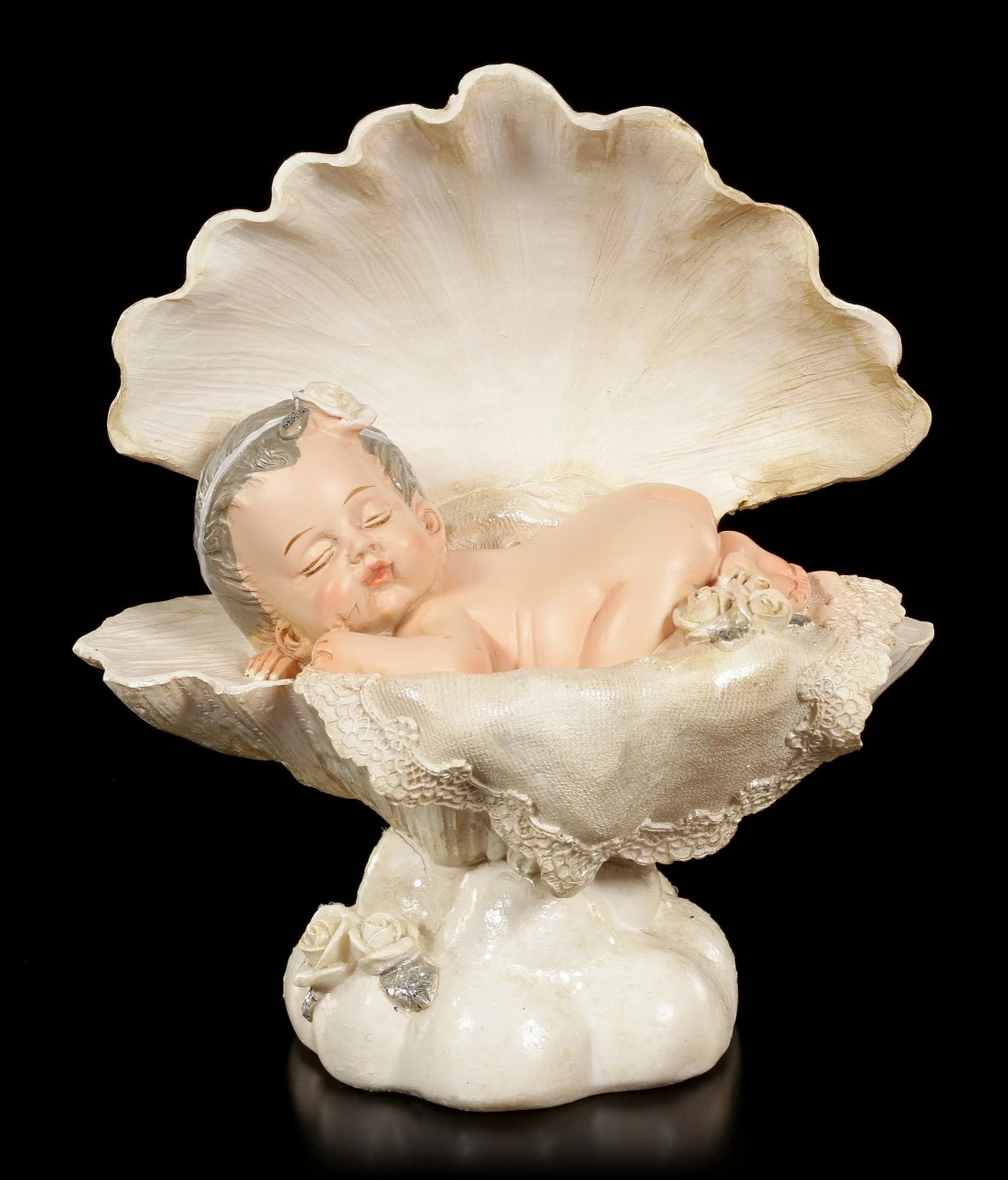 Ein kleiner Meermann wurde geboren und da es im Meer keine Wiegen gibt, bekommt er eine wunderschöne Jakobsmuschel als Bett. Ist es nicht ein zauberhafter Anblick wie friedliche er schläft?