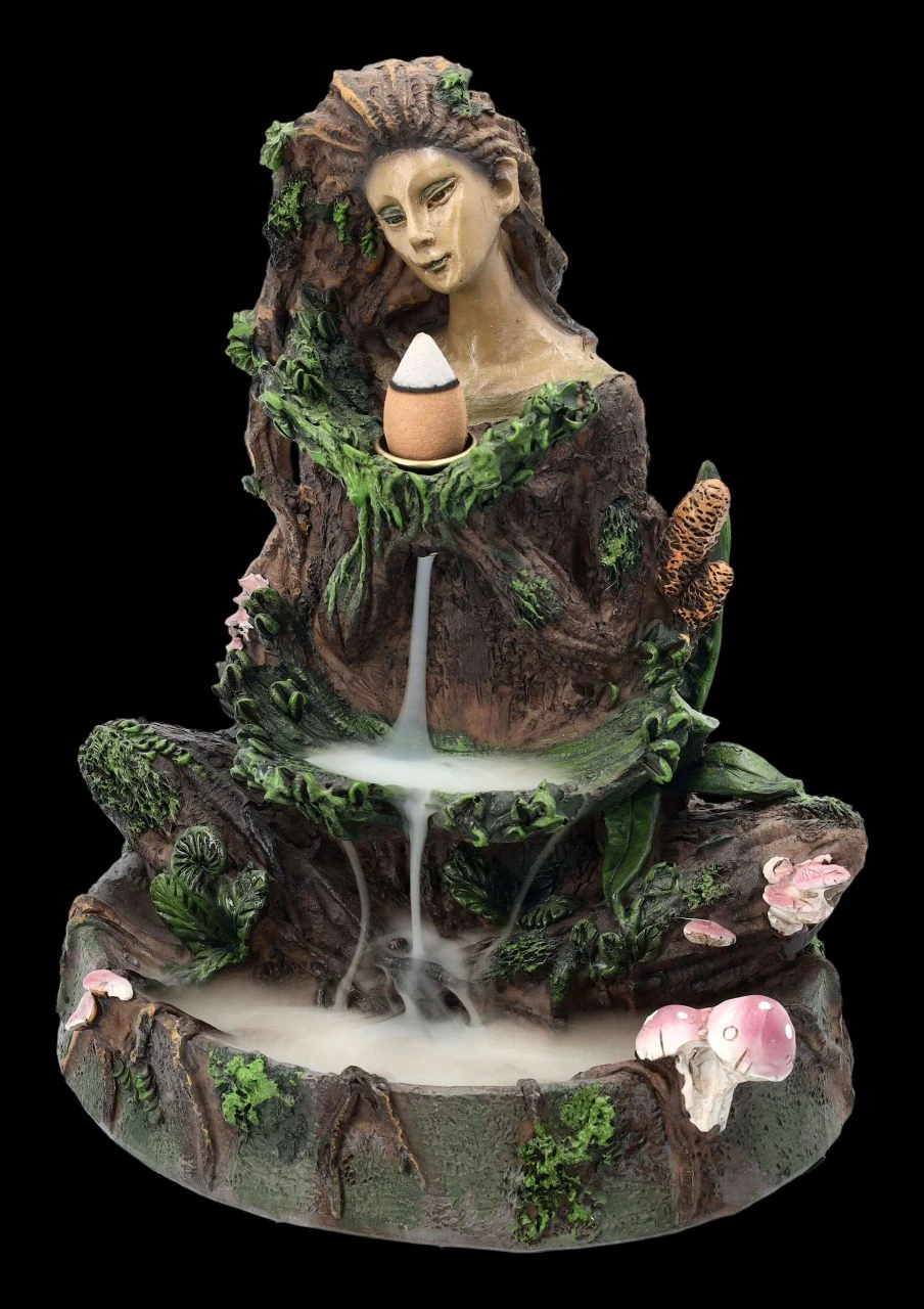 Höchst romantisch – wie eine wunderschöne Jugendstil-Figur – ist dieser faszinierende Backflow Räucherhalter mit der Baum Ent Lady. Aufmerksam beobachtet die mystische Lady den Weg des magischen Rauches, wenn der Backflow Räucherkegel, den sie in den Händen hält, angezündet wird. Der 19,5 cm hohe, 16,5 cm breite und 13 cm tiefe Backflow Räucherhalter wurde außerordentlich detailreich aus Kunststein (Polyresin) gefertigt und liebevoll handbemalt. Dieser fantastische Backflow Räucherhalter mit der mystischen Baum Ent Lady ist nicht nur sehr dekorativ, er ist auch ein wunderbares Geschenk für alle Freunde magischer Fabelwesen. Er ist nur für Backflow Räucherkegel geeignet, von denen einer beigefügt ist. Weitere Räucherkegel finden Sie in unserem Shop. Bitte beachten Sie unsere Sicherheitshinweise zu unseren Backflow Räucherhaltern.