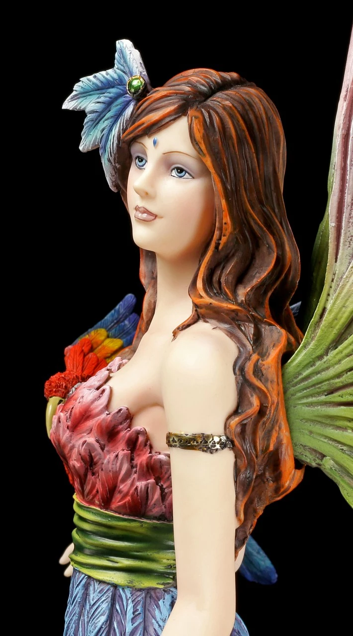 Die Dschungel Elfe streift mit ihrem Papageien Freund durch den Urwald. Sie beschützt die Pflanzen und die Tiere und liebt sie alle. Die wunderschöne und farbenfrohe Elfe bringt ein wenig Fantasie und Natur in Ihre Wohnung.