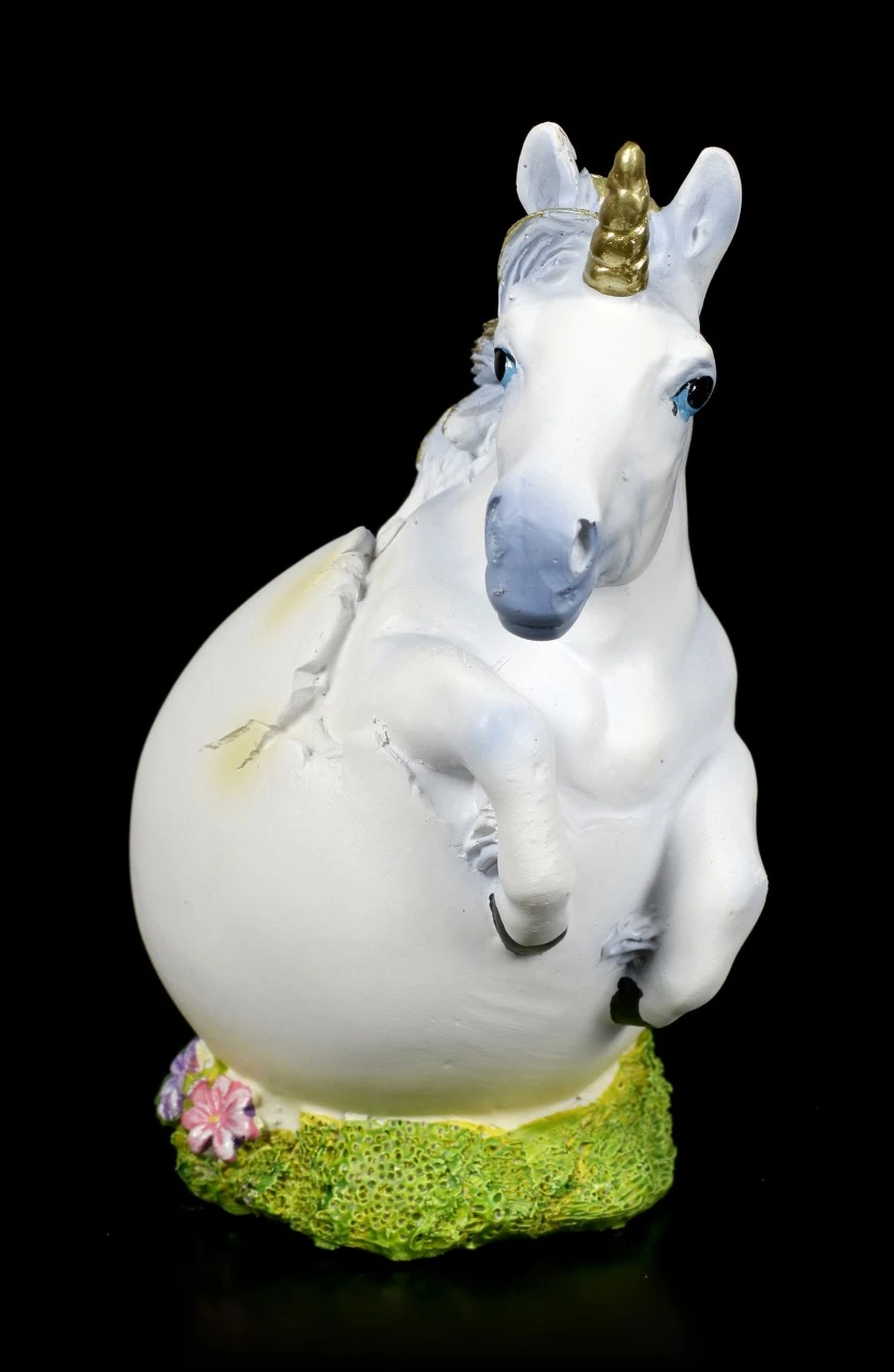 Haben Sie sich auch schon gefragt, wo die wunderschönen Fabelwesen wohl her kommen mögen… Nun ja, eine Theorie besagt, sie schlüpfen aus magischen Eiern. Die Einhorn Figur aus handbemaltem Kunststein (Polyresin) ist eine wunderbare Ergänzung zu jeder Sammlung. Nicht nur zu Ostern ist das schlüpfende Einhorn eine wunderbare Deko.