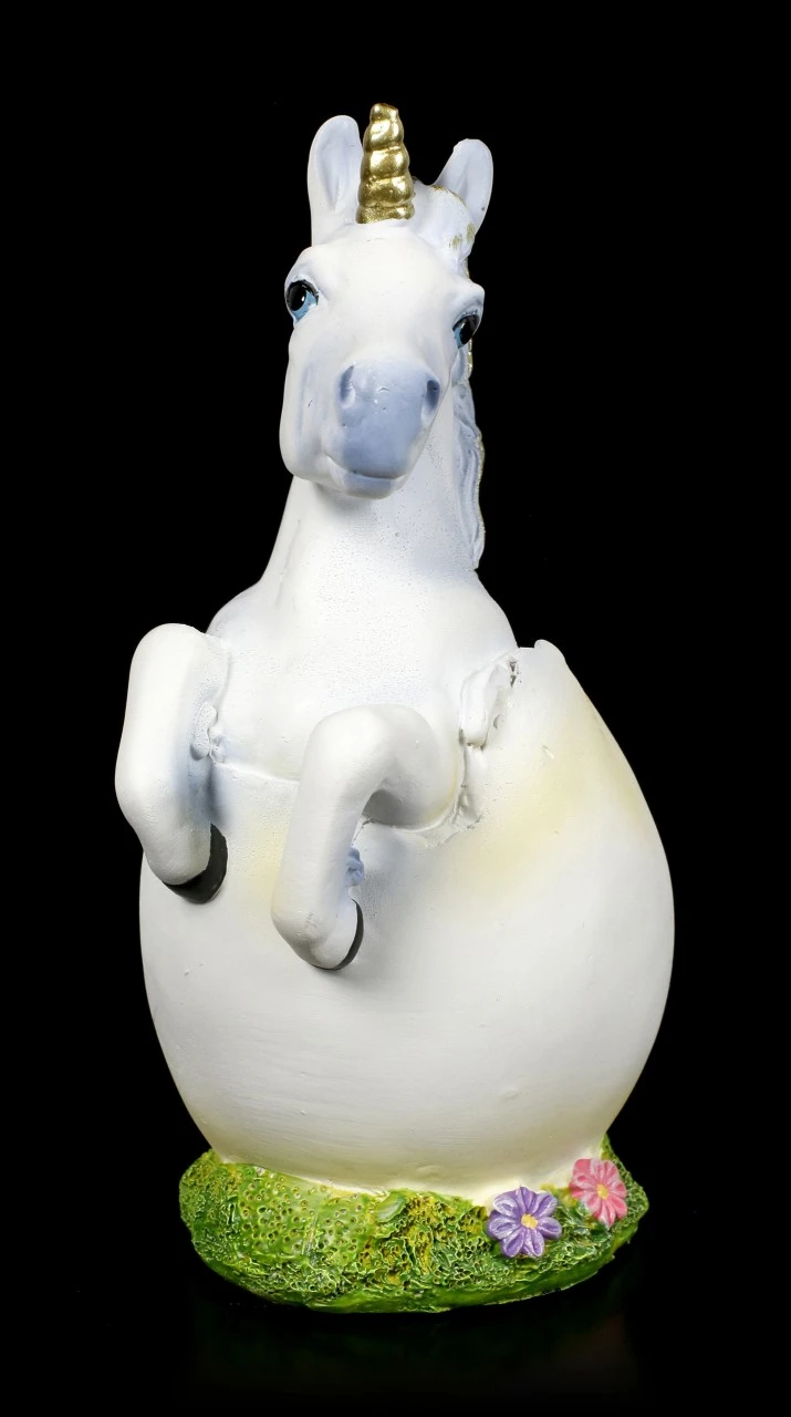 Nicht nur zu Ostern ist das schlüpfende Einhorn eine wunderbare Deko. Wir haben uns schon immer gefragt, wo die Fabelwesen wohl her kommen mögen… Nun ja, eine Theorie besagt, sie schlüpfen aus magischen Eiern. Die Einhorn Figur aus handbemaltem Kunststein (Polyresin) ist eine wunderbare Ergänzung zu jeder Sammlung.