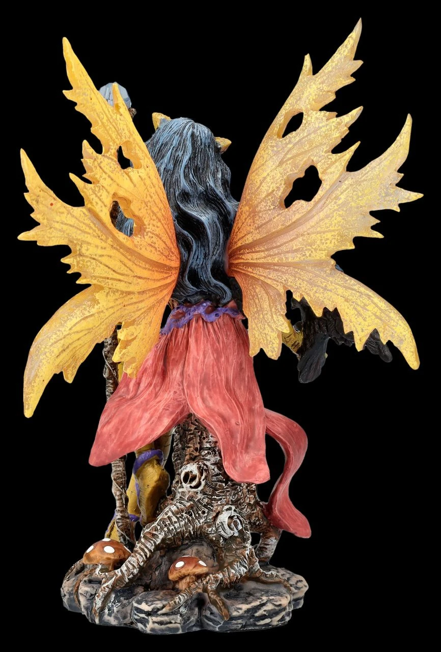 Mit Hilfe ihres treuen Raben ist es Aerith gelungen, für die Zeit des Herbstes zur Hüterin des Zauberstabes aufzusteigen. Nun sitzt sie, mit ihrem Raben auf dem Arm und gut getarnt durch ihre hübsche Kleidung in schönen herbstbunten Farben, auf dem hohen Baumstamm und wartet auf den Einzug der Hexen und Magier. Die 15 cm hohe, 10,5 cm breite und 10 cm tiefe Elfen Aerith mit Zauberstab ist bis zu den zarten Flügeln detailreich aus liebevoll handbemaltem Kunststein (Polyresin) gefertigt. Jeder, der die magische Welt der Elfen und Fabelwesen liebt, wird von dieser fantastischen Elfen-Figur begeistert sein.