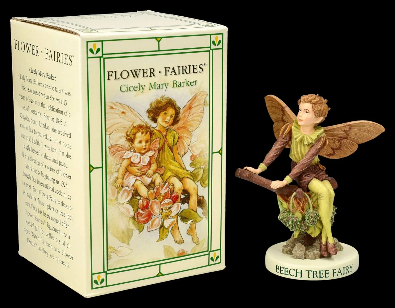Wer liebt es nicht, im Herbst zwischen raschelnden Buchenblättern im Wald spazieren zu gehen? Vielleicht sieht man dann auch diesen niedlichen kleinen Elf zwischen den Blättern auf einem Ast sitzen…Auf dem Podest, auf dem der kleine niedliche Elf sitzt, steht die Bezeichnung ‚Beech Tree Fairy‘. Die Buchen Fee aus der Flower Fairies Collection von Cicely Mary Barker ist zwischen all Ihren Pflanzen sicher ein sofortiger Blickfang. Cicely Mary Barker, die 1895 geborene und 1973 gestorbene englische Illustratorin, widmete sich von Kindheit an der fantasievollen Welt der Elfen und Feen. Ihre ‚Flower Fairies‘ mit den zauberhaften Feenbildern, denen die kleinen Elfen nachempfunden sind, begeistern von Anfang an Kinder und auch Erwachsene. Für alle, die Freude an Bäumen, Blumen, Pflanzen und Kräutern haben, ist der 10,5 cm hohe, 9 cm breite und 8,5 cm tiefe bezaubernde Elf als Buchen Fee aus liebevoll handbemaltem Kunststein (Polyresin) ein perfektes Geschenk und kommt in einem Geschenkkarton. Sammler finden übrigens weitere niedliche Flower Fairies in unserem Shop