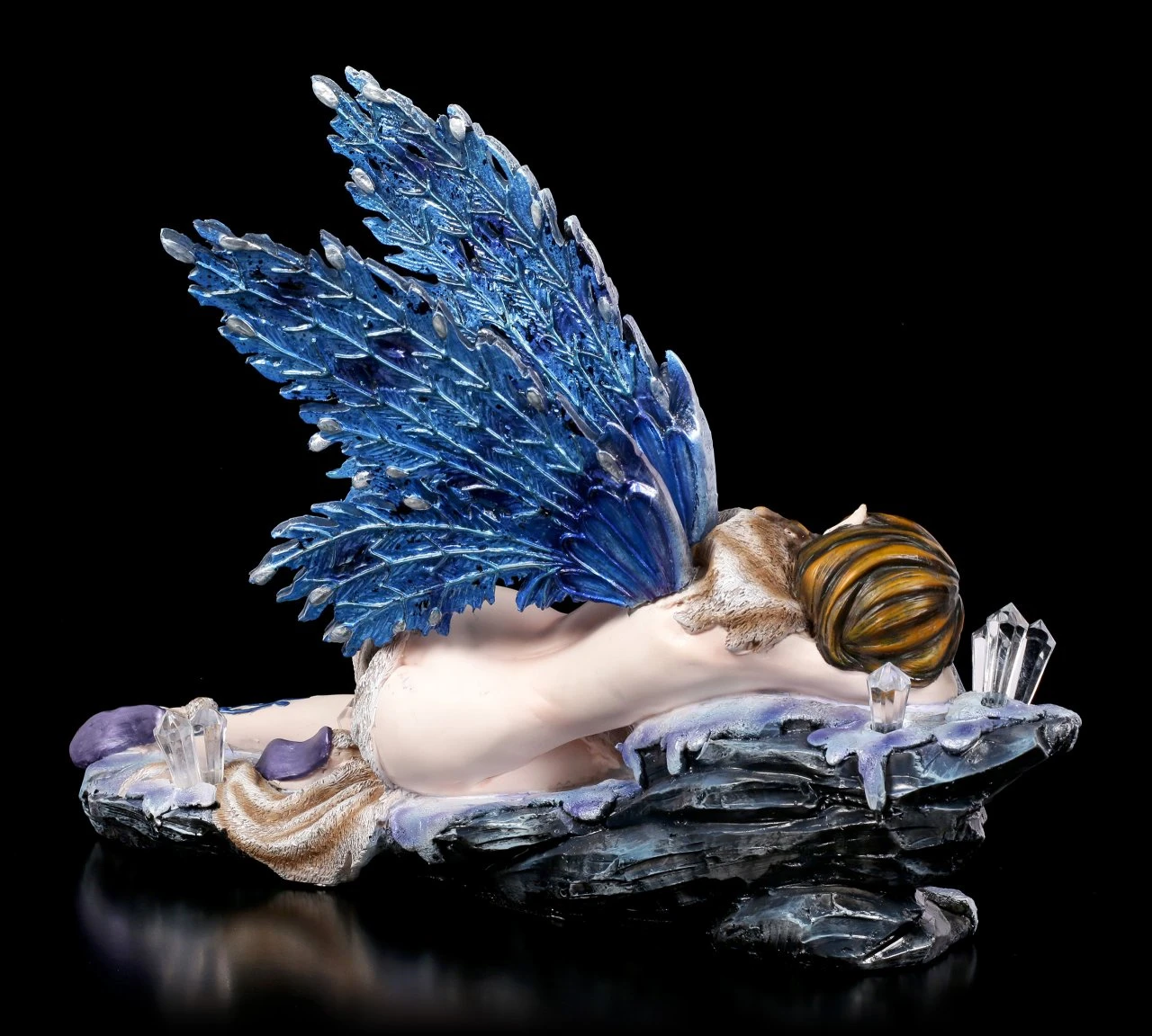 Die Elfe Crystaldormia ruht sich in mitten von kühlen Kristallen aus. Die Elfe ist aus hochwertigem Kunststein gegossen und handbemalt. Sie ist bis in das kleinste Detail sorgfältig ausgearbeitet und lässt so den Betrachter staunen. Diese Elfe bringt Zauber und einen Hauch von Magie in Ihre Wohnung.