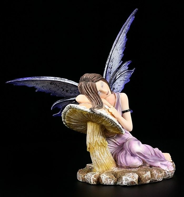 Da ist ja jemand richtig müde! Die kleine Elfe hat ihren Kopf auf einen Pilz gebettet und schläft seelig.