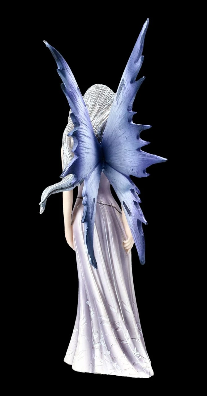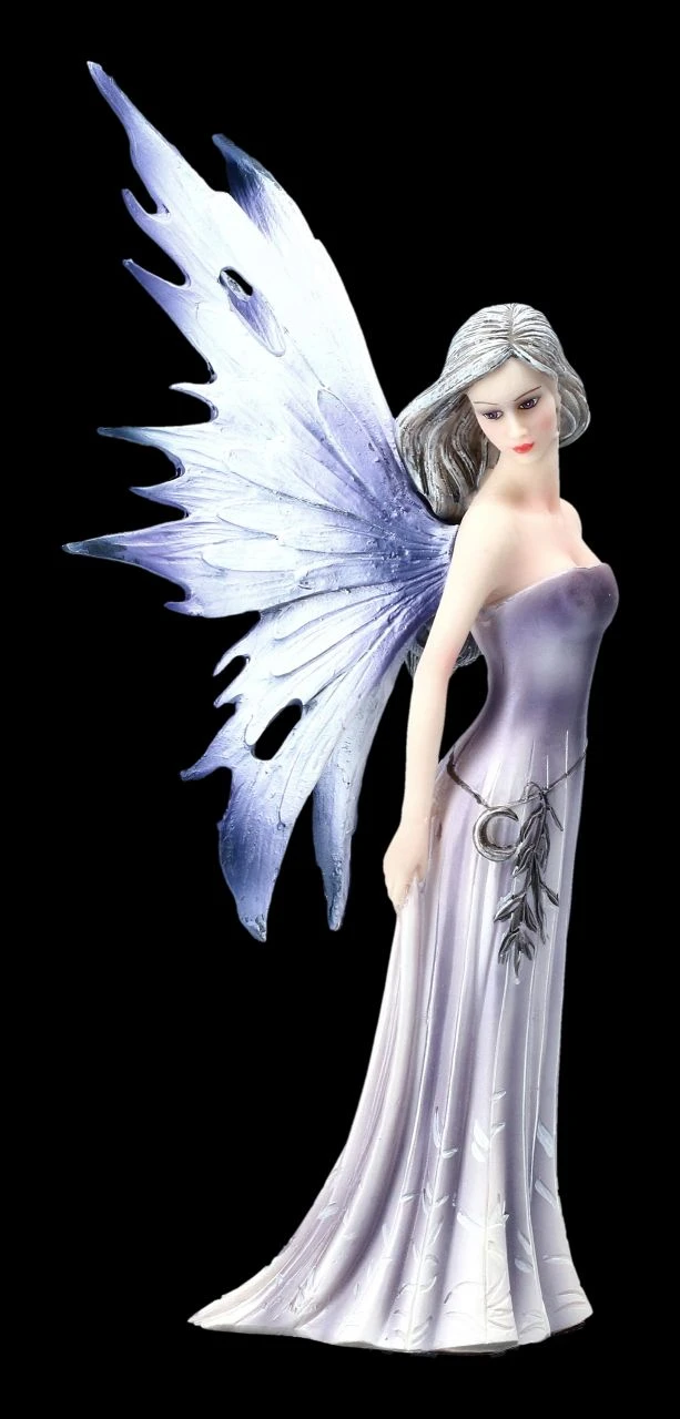 Zart und verträumt schaut die Elfe Dreama zur Seite. Die Mondsichel am Gürtel ihres zart lilafarbenen Kleides beiweist, dass sie zur Gefolgschaft der Mondgöttin gehört. Die wunderschöne Elfenfigur Dreama mit den blau und lila farbenen Flügeln ist aus liebevoll handbemaltem Kunststein (Polyresin) gefertigt. Sie ist 24,0 cm hoch, 7,5 cm breit und 9,0 cm tief und freut sich darauf, in einer romantischen Ecke Ihrer Wohnung ein neues Zuhause zu finden.