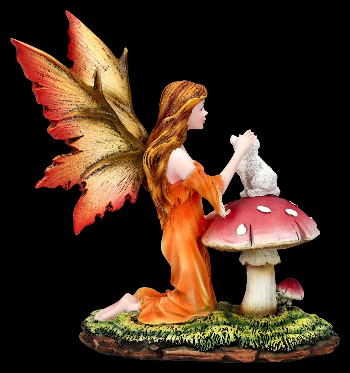 Niedliche Elfenstatue mit treuem Hund: Handgefertigte Fantasy-Figur aus Resin