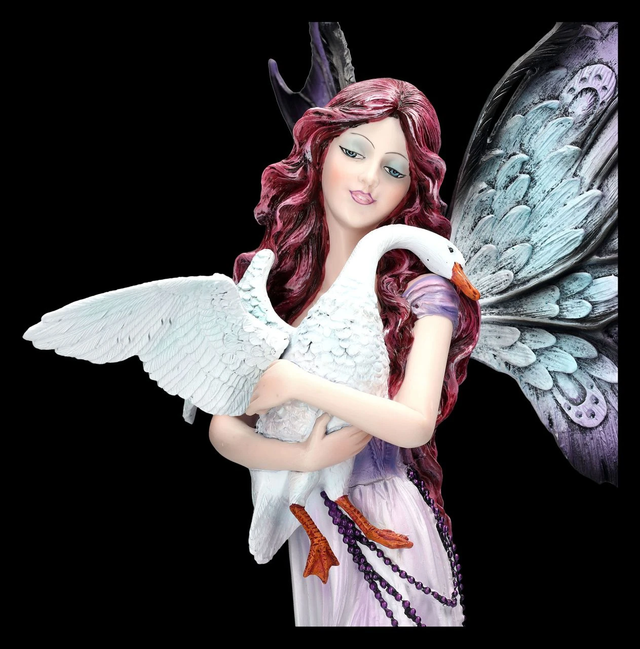 Liebevolle Elfenfigur kümmert sich um Schwan