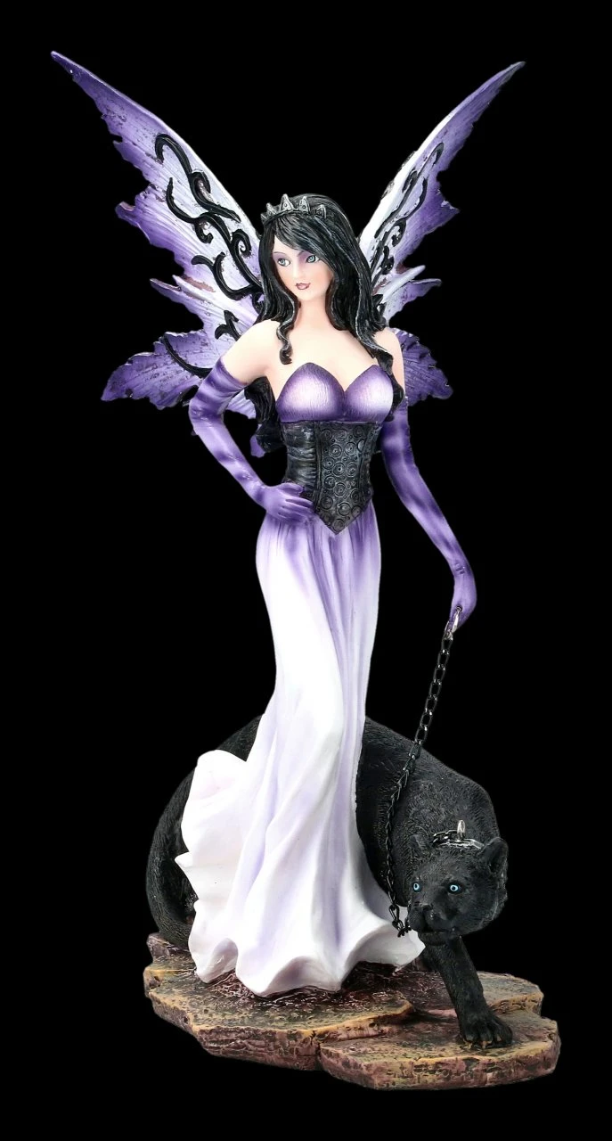 Anmutig und erhaben schreitet die Elfe durch das Elfenschloss. Sie führt ihren schwarzen Panther an der Leine. Die Elfe ist ein stilvoller Blickfang! Sie ist aus hochwertigem Kunststein gefertigt und detailreich handbemalt.