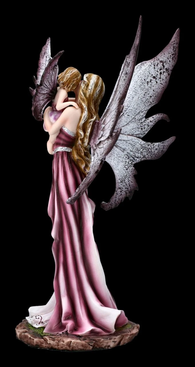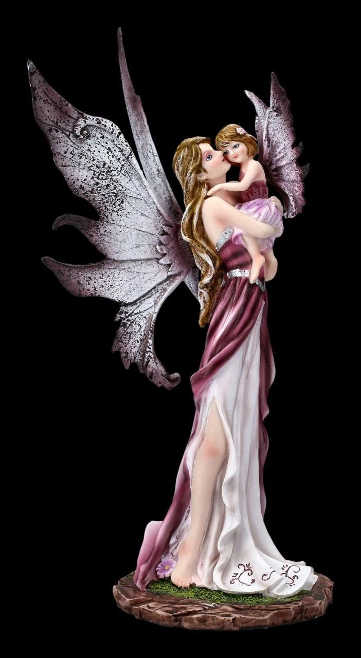 Die Elfenmutter hält liebevoll ihr Kind in die Höhe. Aus ihrem Blick spricht die Liebe einer Mutter zu ihrem Elfenmädchen. Diese wunderschöne Elfenfamilie kommt auf einem Tisch sehr gut zur Geltung.