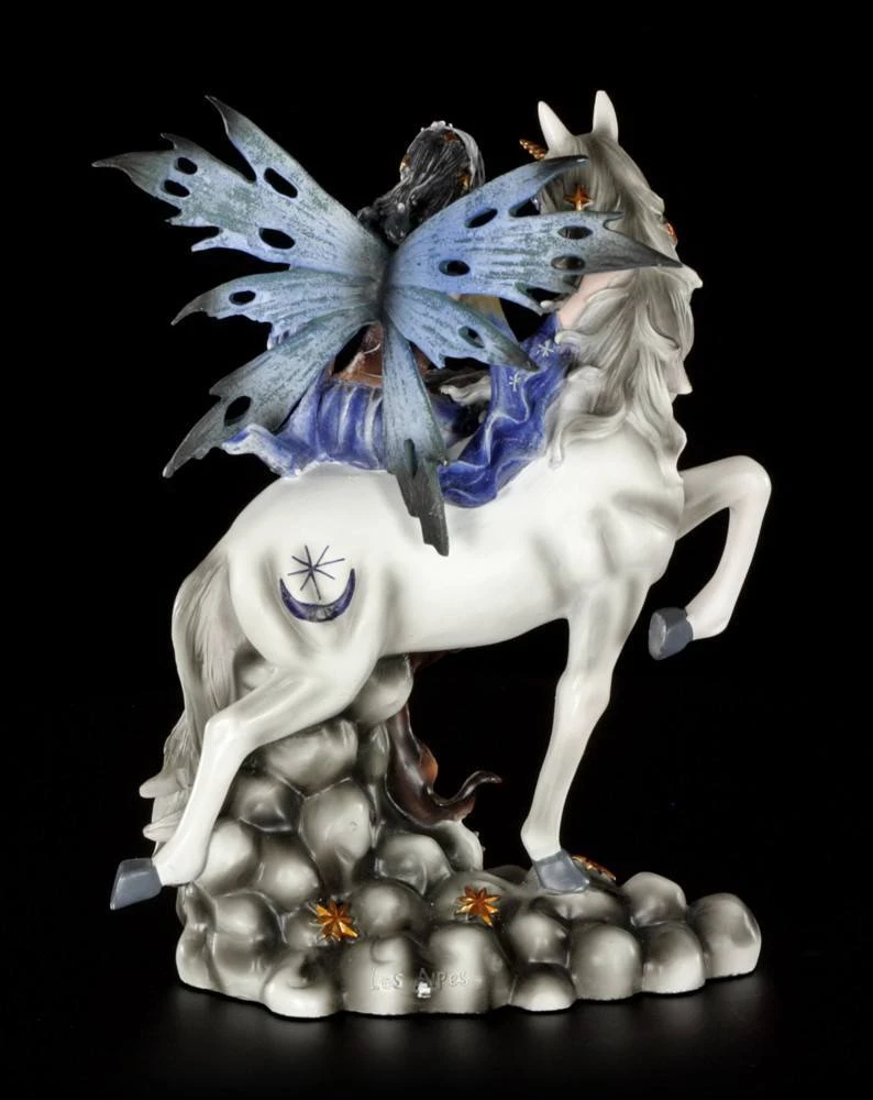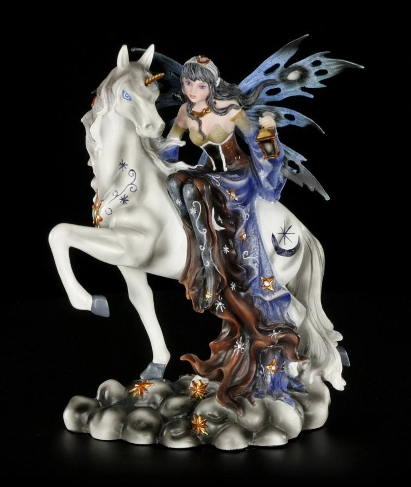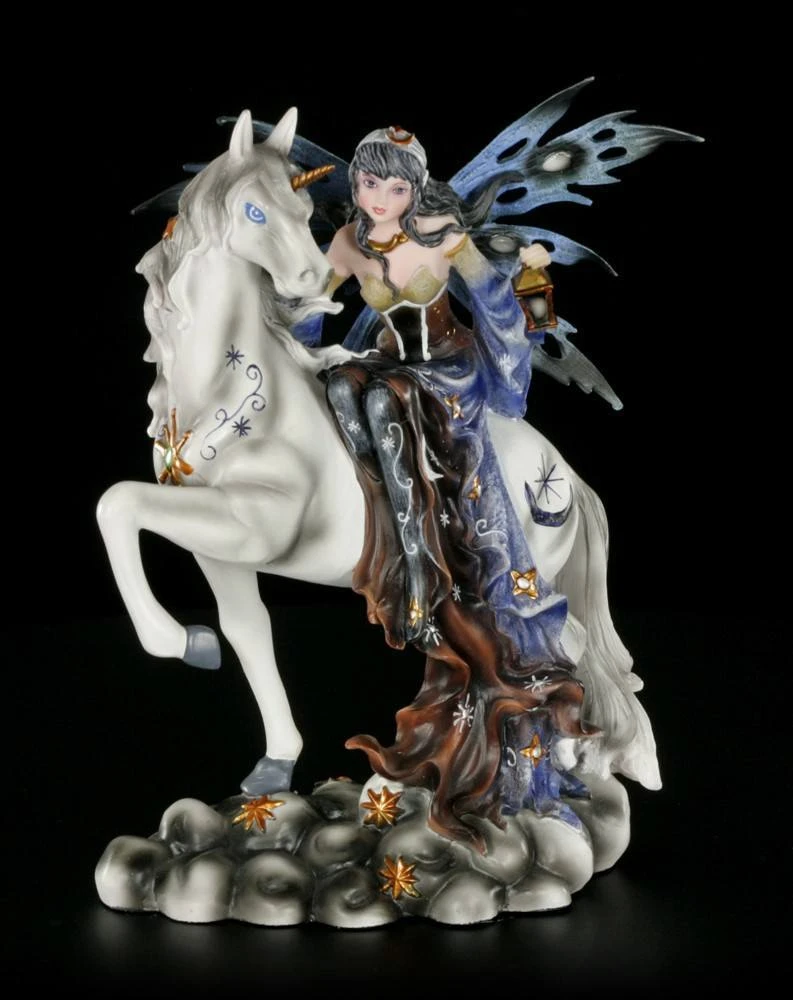 Die Nachtwächterin Noctiva reitet auf ihrem Einhorn durch den Wald. Sie ist eine Nachtwächterin und sucht ihre Gegend nach nächtlichen Gefahren ab.