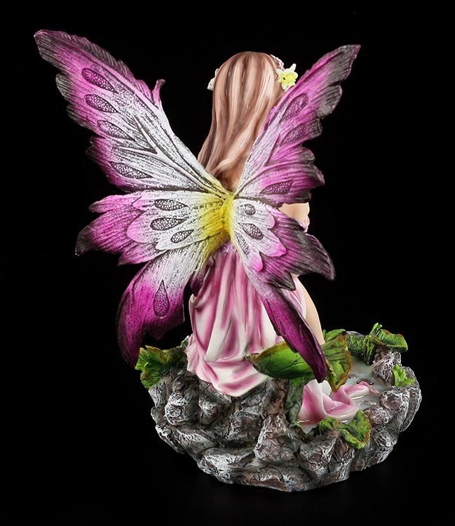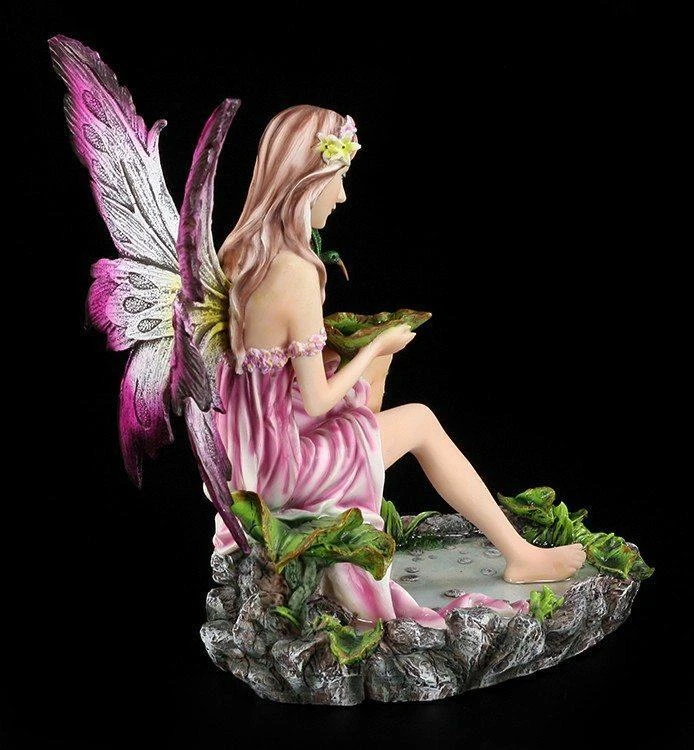 Ist diese Elfe nicht einfach wunderschön? Sie sitzt am Teichufer und badet ihre Füße im kühlen Wasser. In einer Blattschale gibt sie einem kleinen Kolibri zu trinken. Diese Elfe verströmt eine harmonische Atmosphäre und fügt sich perfekt in eine Sammlung ein.