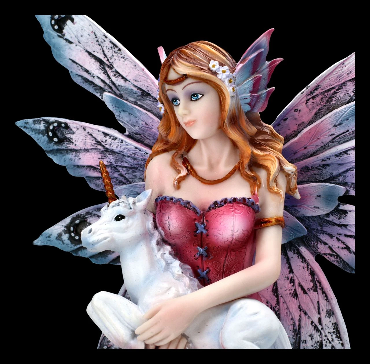 Zärtlich hält die Elfe Unicora im Zauberwald das Baby Einhorn im Arm. Unicora hat ihre schönen Flügel ausgebreitet, um das Baby Einhorn vor der kühlen Luft zu schützen. Sie hat ihrer Einhorn-Freundin versprochen, so lange bei dem Baby auszuharren, bis diese zurück kommt. Aus sehr liebevoll handbemaltem Kunststein (Polyresin) gefertigt, freut sich jeder Einhorn und Elfenfreund über diese liebevolle Elfen-Figur in den zarten Farben. Die Elfe Unicora hat eine Höhe von 18,0 cm, eine Breite von 18,5 cm und eine Tiefe von 13,0 cm. Die Flügel der Elfe sind zum Stecken. Unicora und das Baby Einhorn finden sicher einen schönen und geschützten Platz in Ihrer Wohnung, wo sie auf die Einhorn-Mutter warten können.
