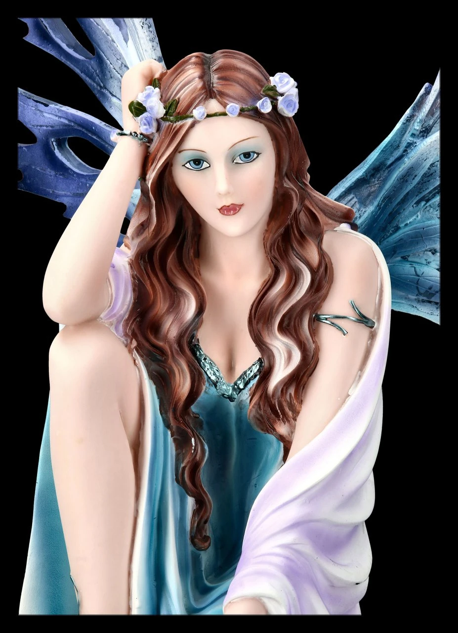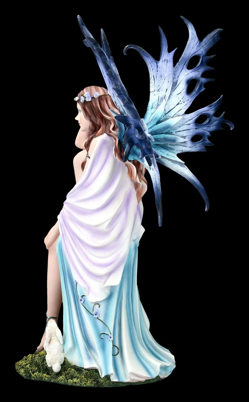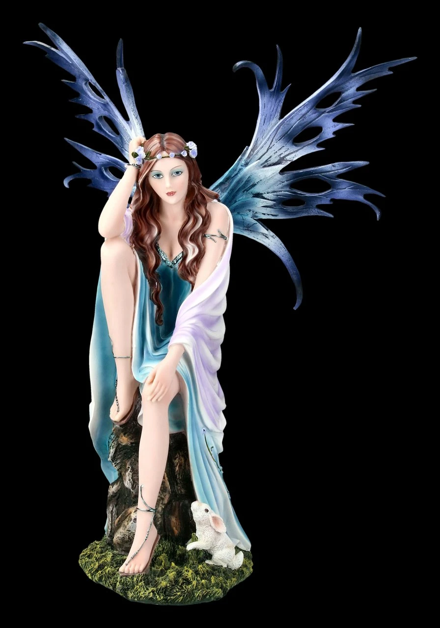 Die anmutige Elfe Virien sitzt gedankenverloren auf einem Ast. Ein kleiner niedlicher Hase besucht sie und hofft auf ein paar Streicheleinheiten. Diese Figur bringt eine angenehm entspannte Atmosphäre in Ihre Wohnung.