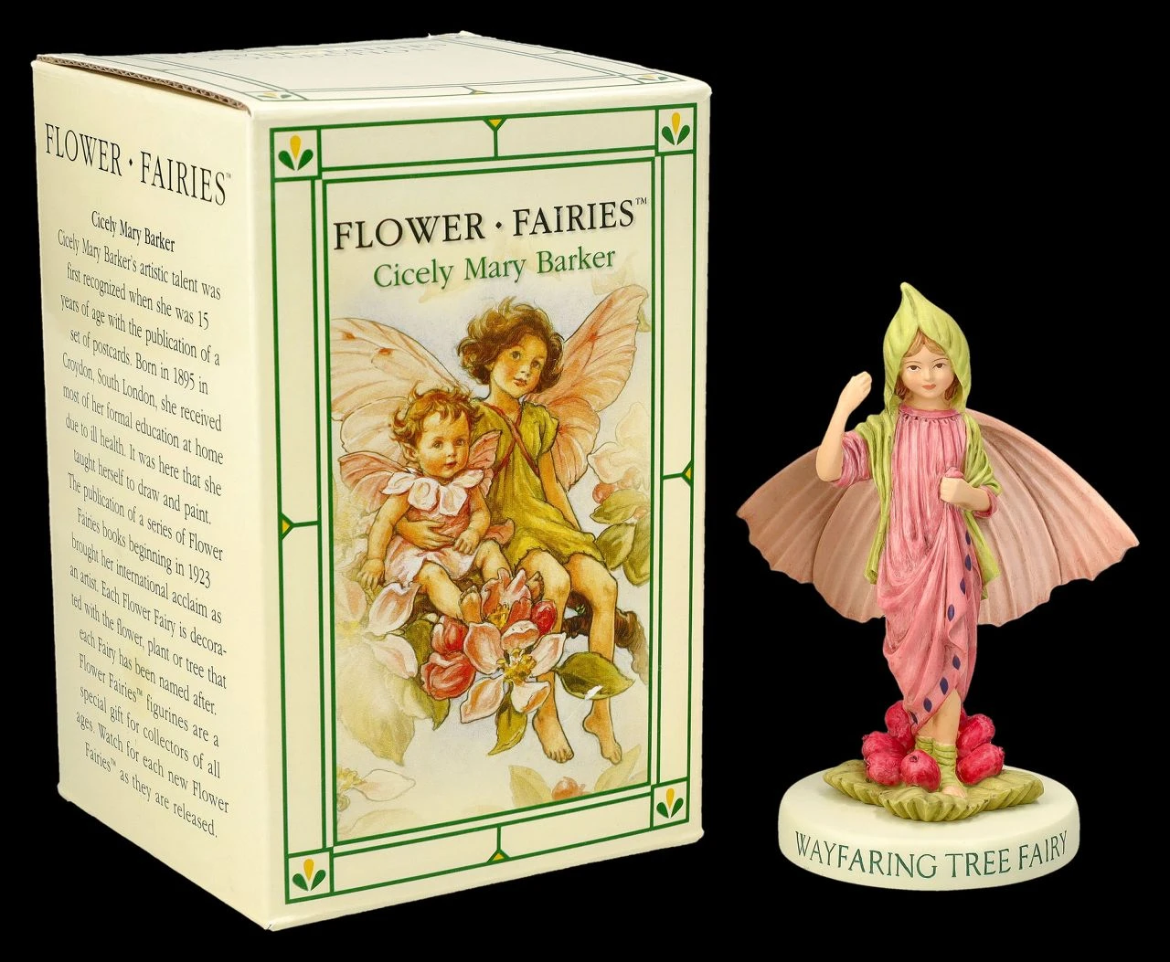 Nun, eigentlich ist ja der ‚Wollige Schneeball‘ ziemlich giftig. Aber Ist diese kleine ‚Wollige Schneeball‘-Fee mit dem rosa Kleidchen und Flügeln und der grünen Blätterhaube nicht trotzdem einfach entzückend? Die 11 cm hohe, 8 cm breite und 6 cm tiefe kleine Elfe steht auf einem Podest mit der Bezeichnung ‚Wayfaring Tree‘, was übersetzt ganz lustig ‚Der wandernde Baum‘ heißt. Die niedliche Elfe aus der Flower Fairies Collection von Cicely Mary Barker ist zwischen all Ihren Pflanzen sicher ein entzückender Schmuck. Cicely Mary Barker, die 1895 geborene und 1973 gestorbene englische Illustratorin, widmete sich von Kindheit an der fantasievollen Welt der Elfen und Feen. Ihre ‚Flower Fairies‘ mit den zauberhaften Feenbildern, denen die kleinen Elfen nachempfunden sind, begeistern von Anfang an Kinder und auch Erwachsene. Für alle, die Freude an Blumen, Pflanzen und Kräutern haben, ist die ‚Wollige Schneeball‘ Fee aus liebevoll handbemaltem Kunststein (Polyresin) ein perfektes Geschenk und kommt in einem Geschenkkarton. Weitere niedliche Flower Fairies finden Sammler in unserem Shop.