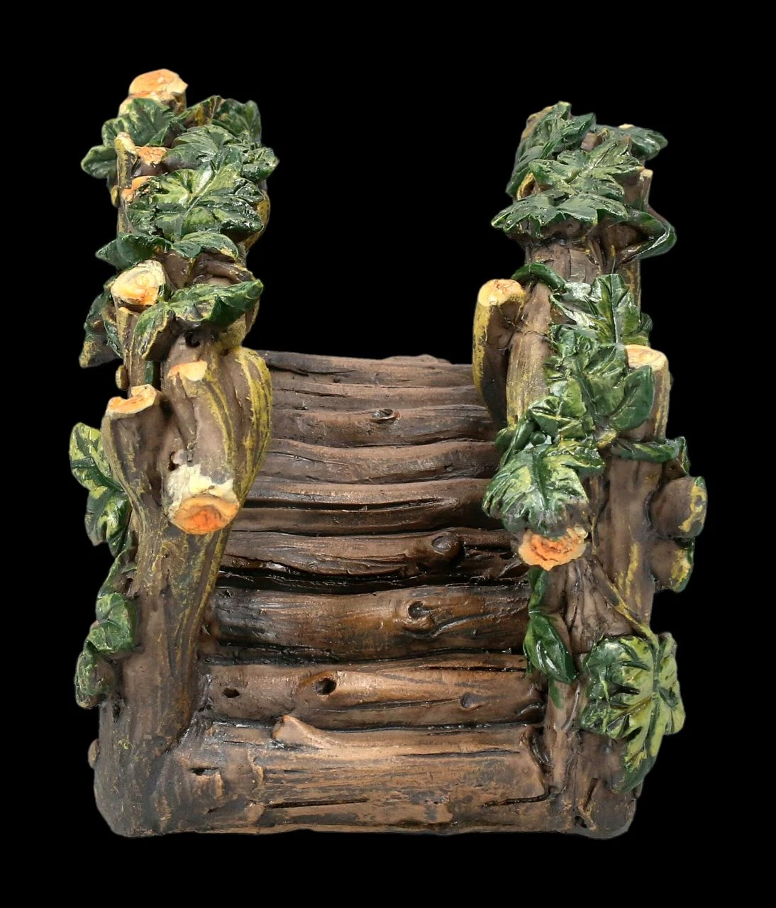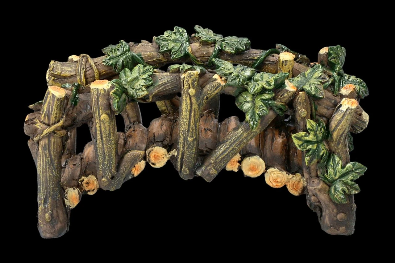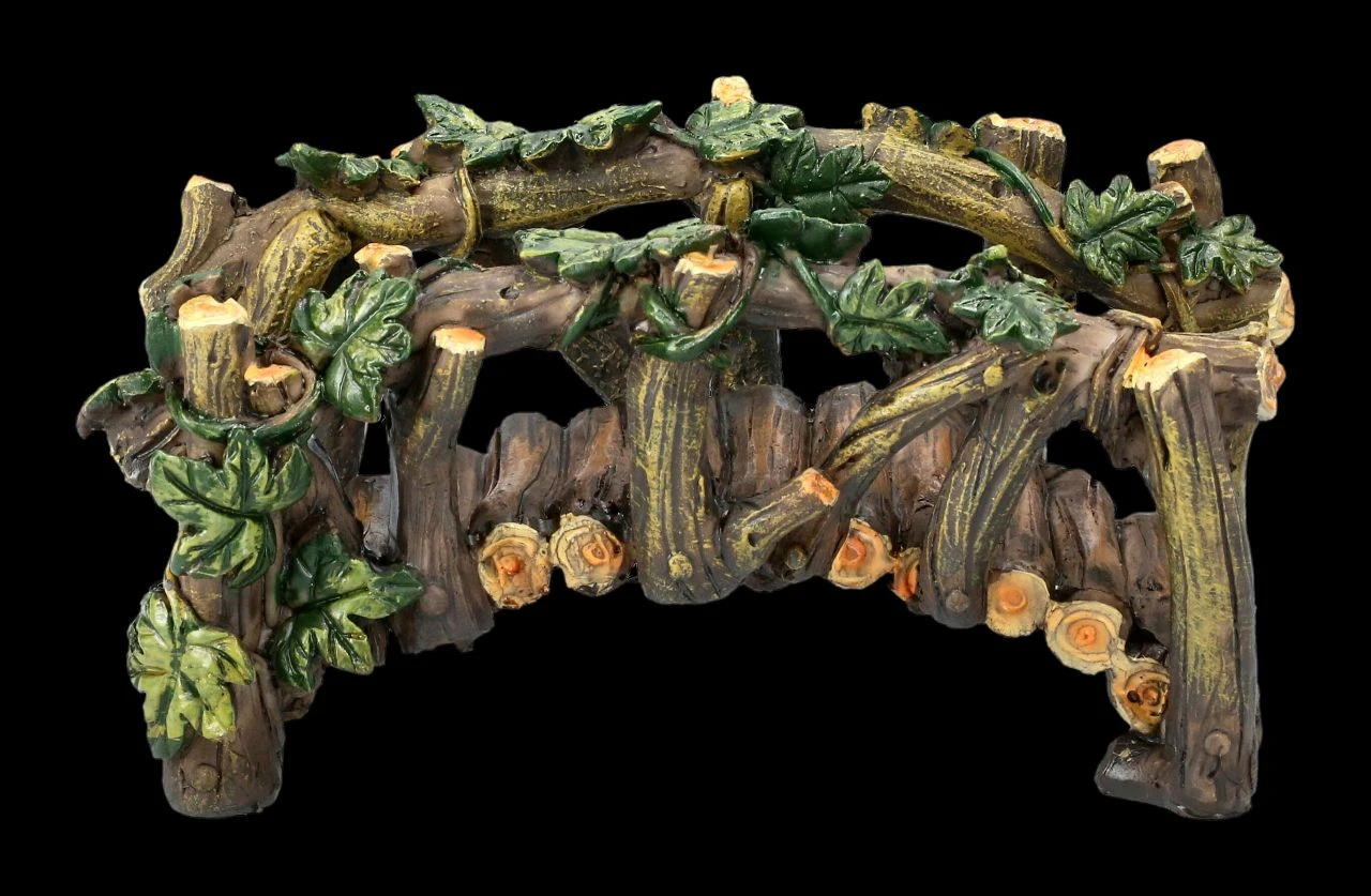 Ihr Elfengarten bekommt einen Teich? Dann brauchen Sie unbedingt diese, wie aus den alten Zweigen und Stämmen eines Efeus gefertigte Brücke. Sie ist liebevoll aus handbemaltem Kunststein (Polyresin) hergestellt und 7 cm hoch, 13 cm breit und 7 cm tief. Eine schöne und sehr natürlich aussehende Brücke und ein wunderbarer Hingucker für jeden Elfengarten.