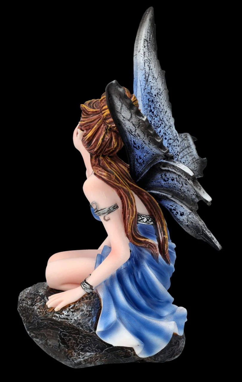 Wenn es noch dunkel ist und am Himmel das erste Blau zu entdecken ist, kann man die kleine Elfe vielleicht entdecken, wenn sie die himmlische Morgenluft schnuppern. In ihrem blauen Kleidchen und mit den nachtblauen Flügeln ist sie sehr gut getarnt. Die niedliche Elfenfigur ist aus liebevoll handbemaltem Kunststein (Polyresin). Ihre schönen Flügel sind zum Stecken und passen perfekt zu ihrem Kleidchen. Die 16 cm hohe, 10 cm breite und 13,5 cm tiefe Elfe ist auch ein perfektes Geschenk für alle, die sich gerne mit Elfen und Feenwesen umgeben und ebenso gerne mal die frische Morgenluft genießen.