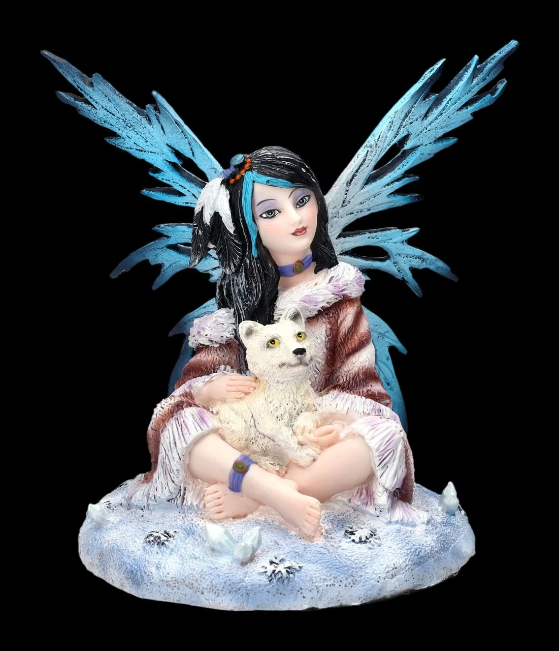 Eisig bläst der Wind über das ewige Eis der winterlichen Nordsee. Doch mittendrin sitzt Polara auf einer Eisscholle und streichelt das weiße Fell eines kleinen Babywolfes, der sein Rudel verloren hat. Sie wird sich nun um ihn kümmern, erzählt sie ihm und der kleine Wolf schnurrt zufrieden wie ein Kätzchen. Bis zu den filigranen Flügeln, die zum Stecken sind, und dem kleinen Wolf ist die niedliche 12 cm hohe, 9,5 cm breite und 10 cm tiefe Elfe Polara detailreich aus Kunststein (Polyresin) gefertigt und in den eisblauen Farben des tiefsten Winters liebevoll von Hand bemalt. Sie freut sich auf einen schönen Platz bei Ihnen, ist aber auch ein wunderbares Geschenk für Ihre Elfen- und Feen-Freunde.