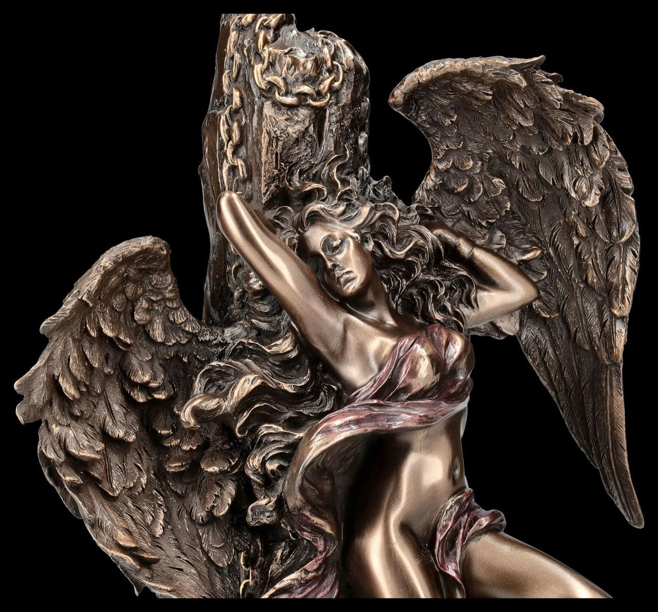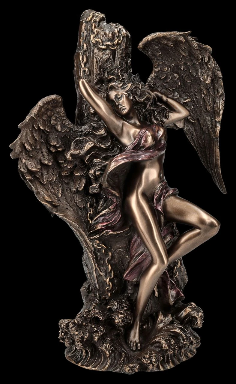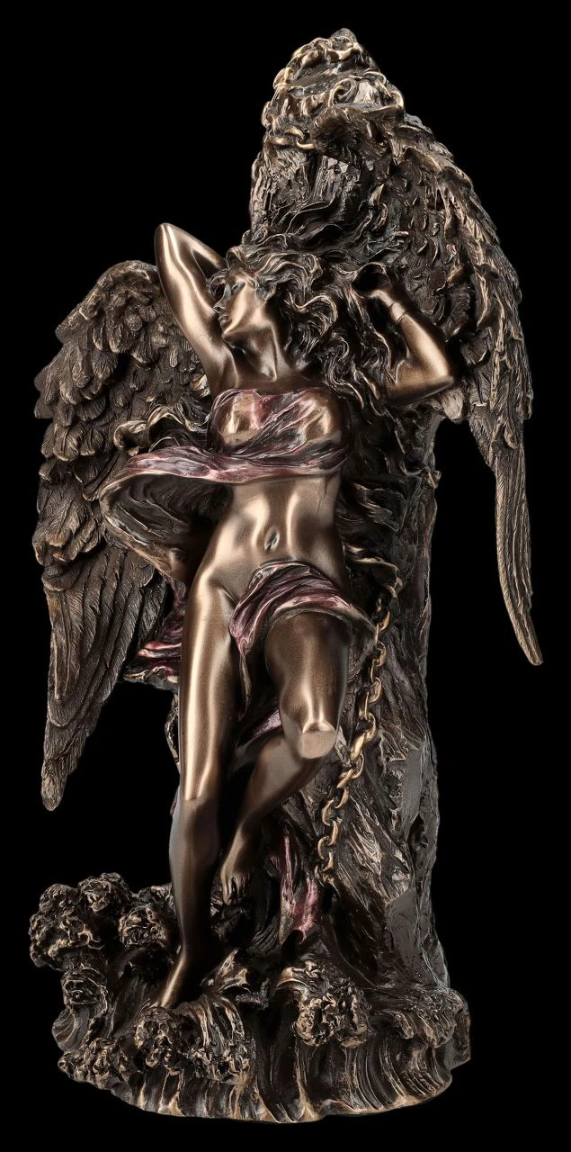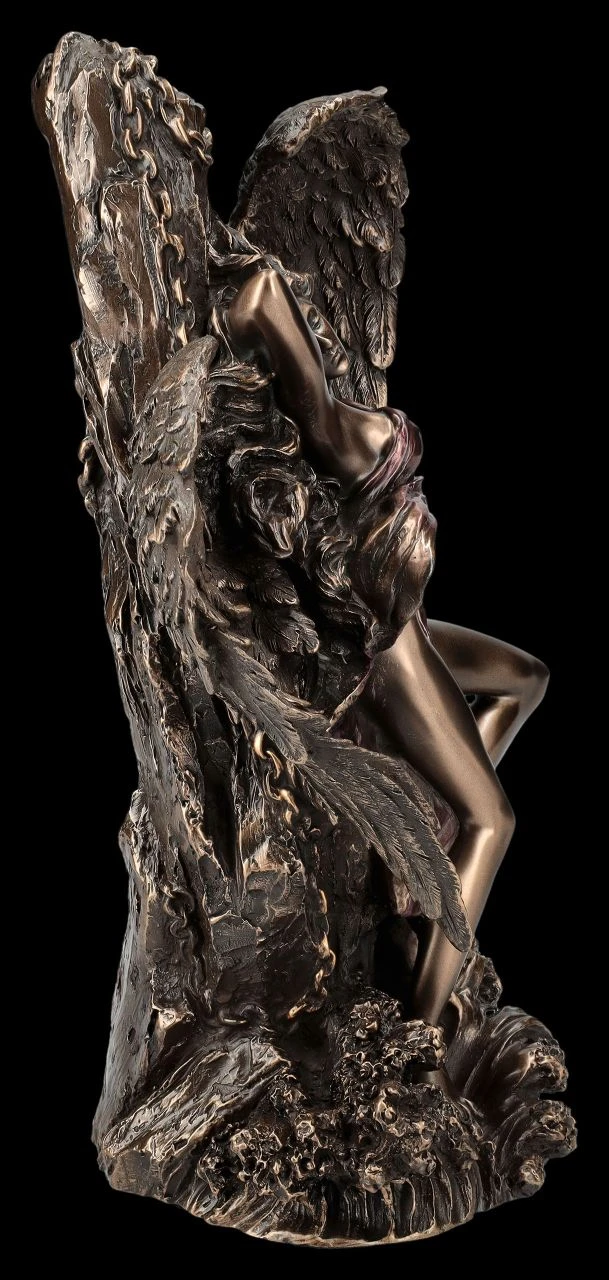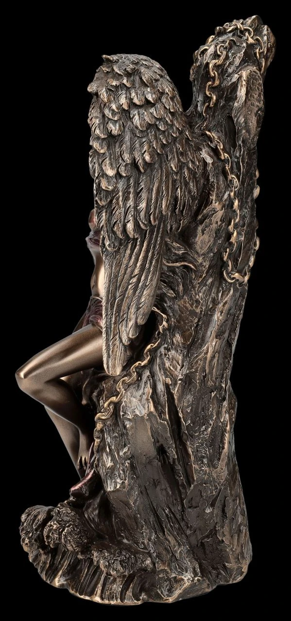 Lediglich mit einem Nichts als Tuch leicht bedeckt, wurde dieser wunderschöne Engel an einen Felsen gekettet. Wurde das schöne Wesen für etwas bestraft? Die etwas durcheinander geratenen Federn der großen Flügel und der gewundene Körper sprechen dafür. Oder wurde der prächtige Engel von Veronese für Sie eingefangen? Auch das wäre möglich…. Die außergewöhnliche Engel-Figur aus der Studio Collection wurde aus edel bronziertem und sehr zart coloriertem Kunststein (Polyresin) gefertigt und ist 25,5 cm hoch, 16,5 cm breit und 12 cm tief. Chained Angel ist nicht nur ein dekorativer Blickfang, er ist vielleicht auch ein Geschenk für jemand ganz Besonderen.