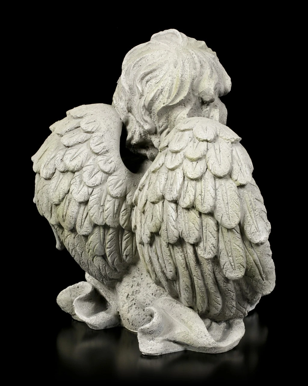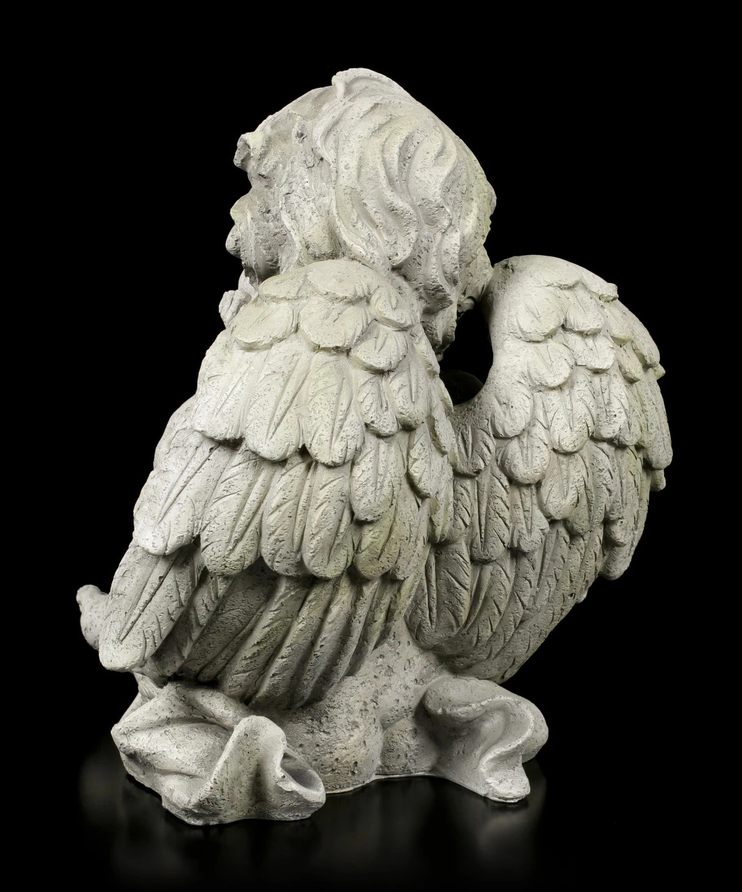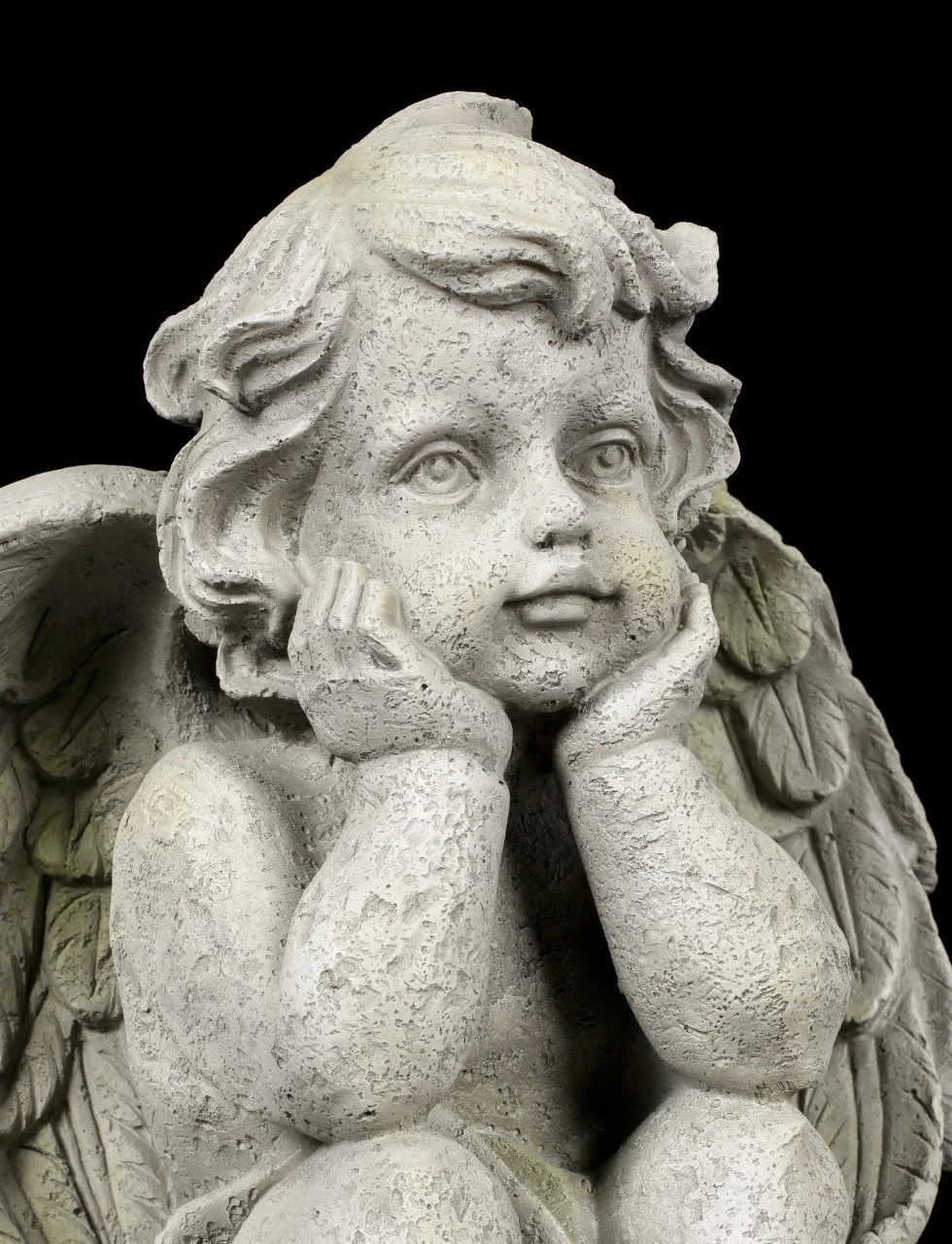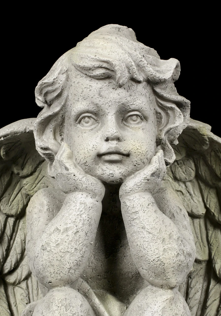 Ganz in Gedanken versunken sitzt der kleine Engel Junge in Ihrem Garten und beobachtet das Treiben der Tiere um sich herum. Die handbemalte Gartenfigur aus Magnesia-Glasfaser wird sich wunderbar in jede Gartengestaltung einbinden lassen. Natürlich ist der kleine Engel auch auf einer Terrasse oder in einem Wohnraum sehr hübsch anzusehen.