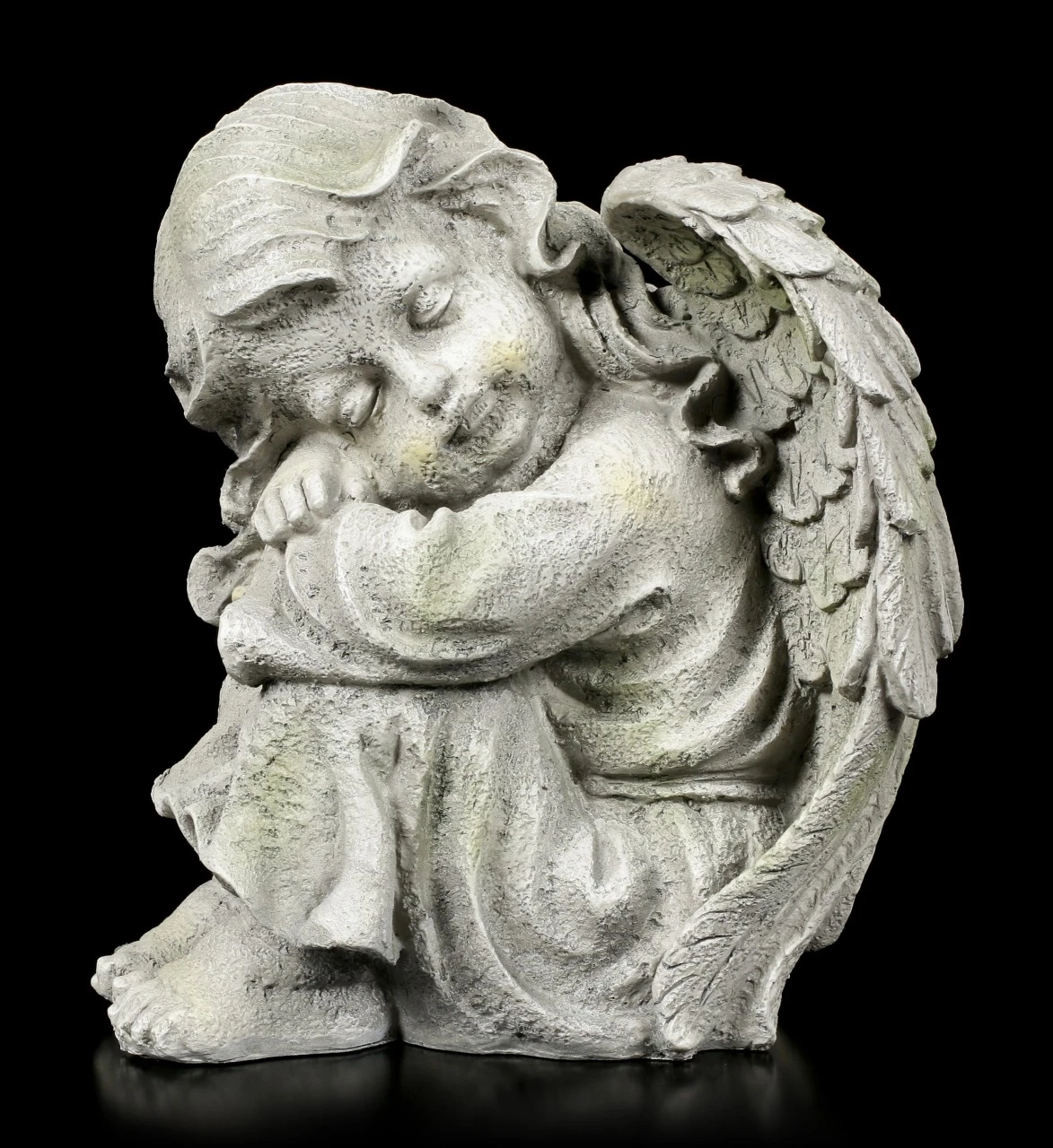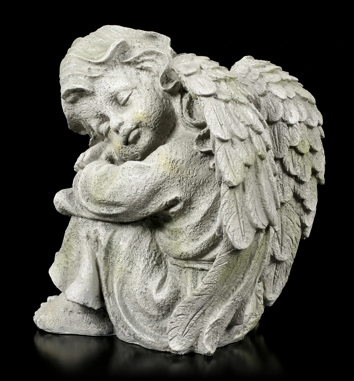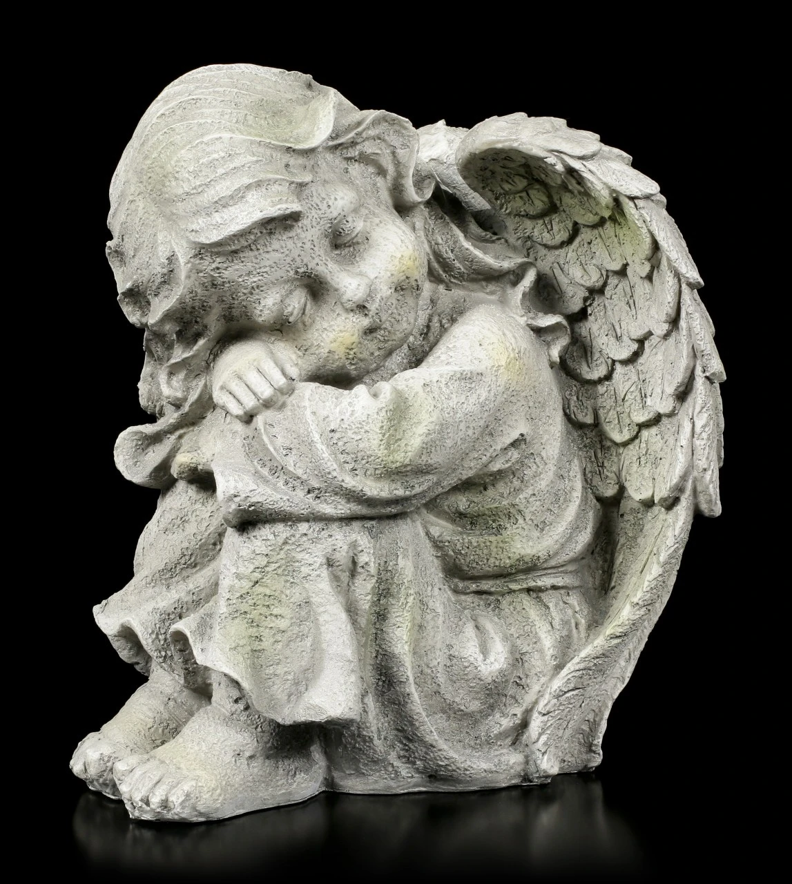 Der hübsche kleine Engel links ist eine schöne Ergänzung in Ihrem Garten. Die handbemalte Gartenfigur aus Magnesia-Glasfaser wird sich wunderbar in jede Gartengestaltung einbinden lassen. Natürlich ist der kleine Engel auch auf einer Terrasse oder in einem Wohnraum sehr chic anzusehen. Er hat seinen Kopf auf seine Arme gebettet und schläft tief und fest.