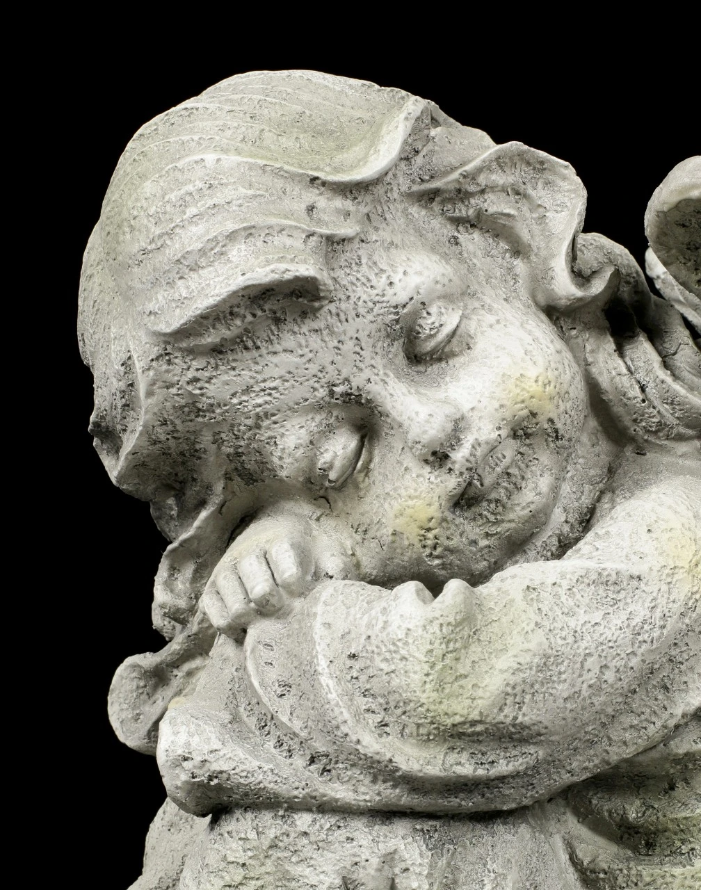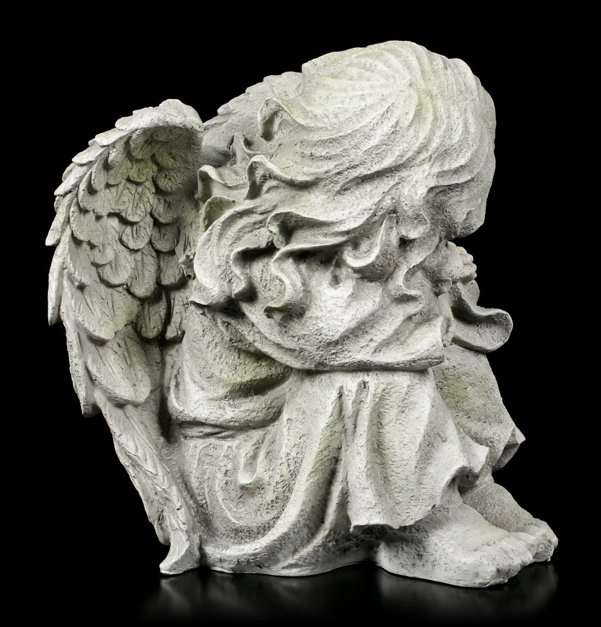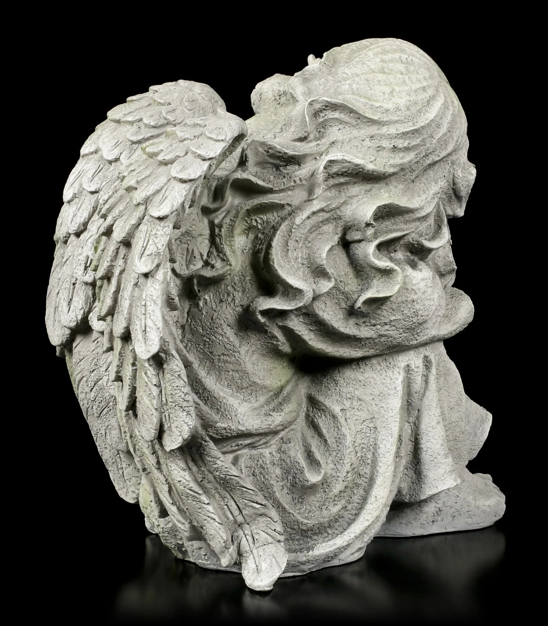 Der hübsche kleine Engel links ist eine schöne Ergänzung in Ihrem Garten. Die handbemalte Gartenfigur aus Magnesia-Glasfaser wird sich wunderbar in jede Gartengestaltung einbinden lassen. Natürlich ist der kleine Engel auch auf einer Terrasse oder in einem Wohnraum sehr chic anzusehen. Er hat seinen Kopf auf seine Arme gebettet und schläft tief und fest.