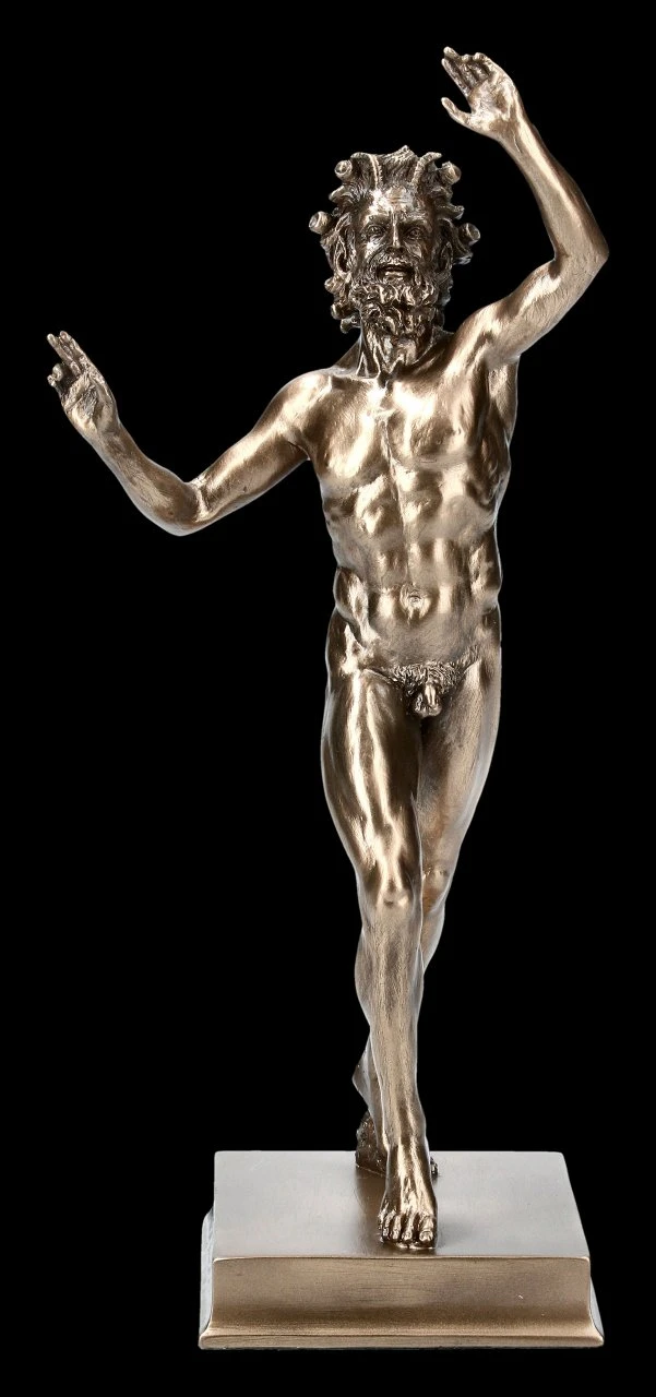 Diese Faun Figur ist ein Replikat der in Pompeji gefundenen Bronzestatue. Das durch den Vesuv 79 n. Chr. verschüttete Haus wurde daraufhin Haus des Fauns genannt. Die original Statue steht heute im Nationalmuseum in Neapel. Die Bronzestatue die an der Ausgrabungsstelle steht ist nur eine Kopie.