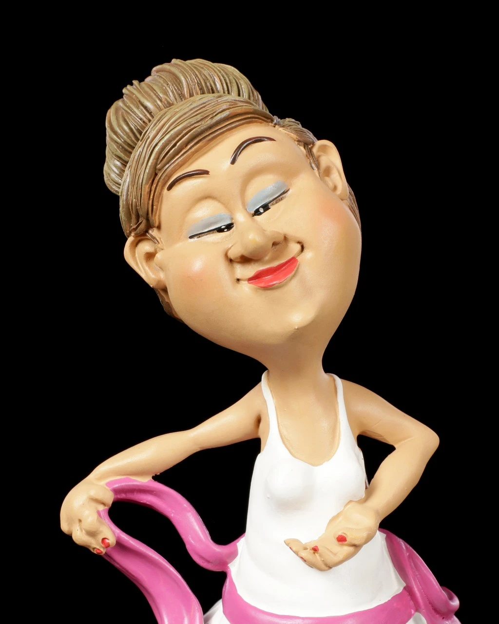 Die Ballett Tänzenerin übt mit sicheren und anmutigen Bewegungen immr wieder Ballettschritte aus Schwanensee. Als Maskottchen hat sie daher stets ihren weißen Schwan dabei. Das weiße Ballettkostüm erinnert selbst an einen eleganten Schwan. Die lustige Funny Job Figur aus Kunststein (Polyresin) ist im berühmten Karikatur Stil gehalten und liebevoll handbemalt.