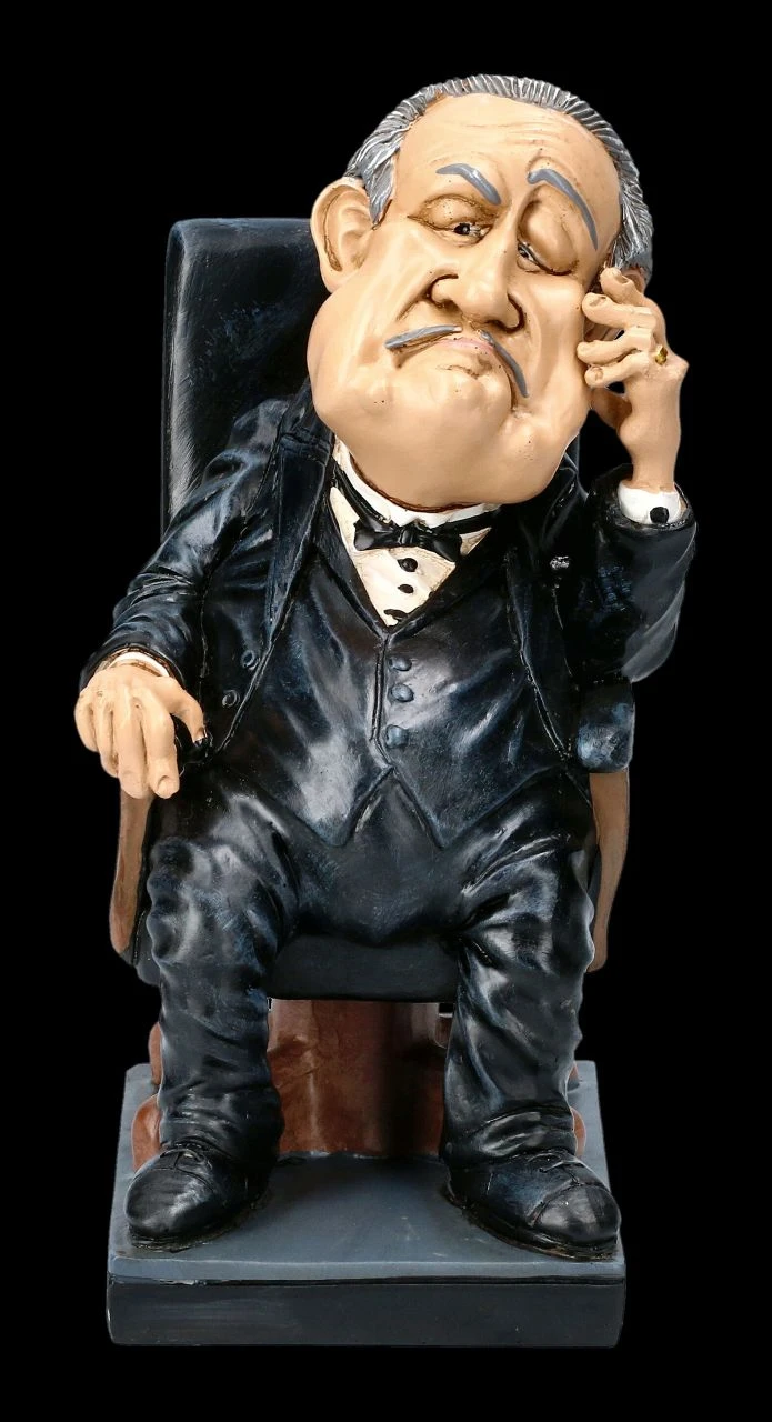 Die Geste und die Mimik – einfach unverwechselbar und unvergessen.und mit wenigen Details perfekt in Szene gesetzt von Warren Stratford – der Filmstar Marlon als Don Vito… Alleine wie bei der Funny Job Figur das Oberhaupt der ‚Familie‘ in seiner lässigen Haltung dargestellt wird, ist nicht nur lustig, sondern auch beeindruckend, denn jeder weiß sofort, wer damit gemeint ist. Die witzige Funny Job Figur des Filmstars Marlon mit der Höhe von 15,5 cm, der Breite von 7 cm und der Tiefe von 8,5 cm ist sorgfältig aus handbemaltem Kunststein (Polyresin) hergestellt. Für Filmfans und Sammler der lustigen Funny Job Figuren ist der Filmstar Marlon das perfekte Geschenk. Sammler und Fans finden in unserem Shop übrigens viele weitere witzige Funny Job Figuren.