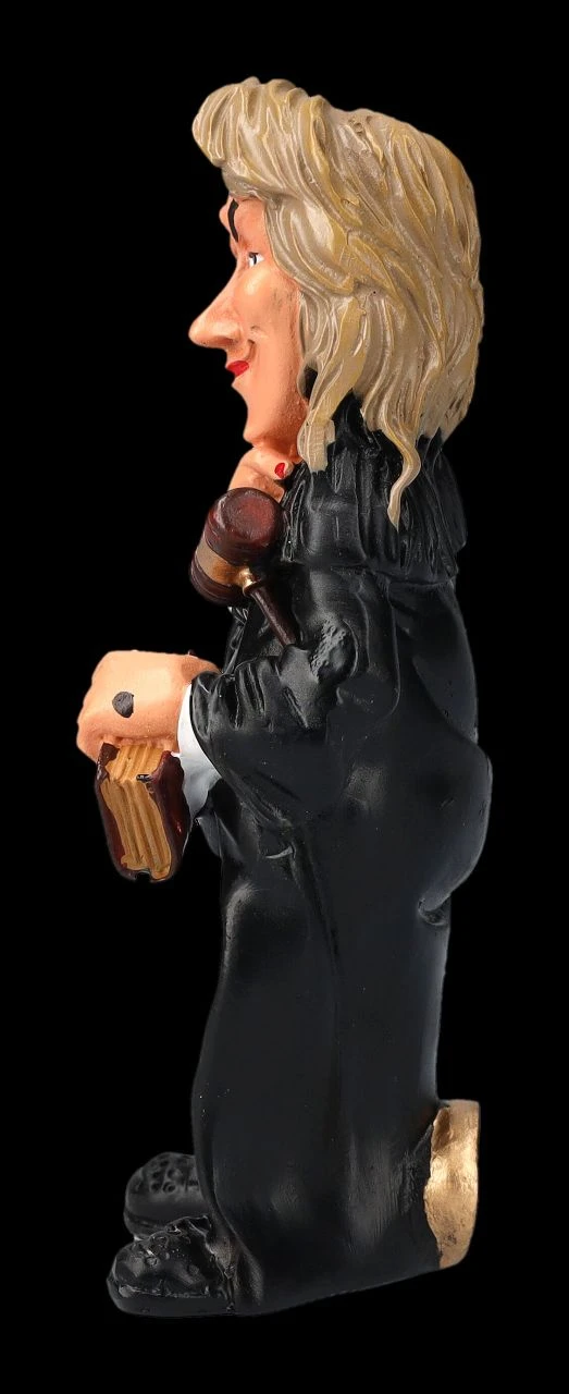 Mit dem Urteil das sie gerade gesprochen hat, scheint sie selbst sehr zufrieden zu sein. Zumindest deutet der Gesichtsausdruck der Richterin, die lächelnd mit dem Gesetzbuch und dem Richterhammer in der Hand da steht, darauf hin. Die lustige Funny Job Figur wurde aus handbemaltem Kunststein (Polyresin) gefertigt und ist 9,5 cm hoch, 3 cm breit und 3 cm tief. Diese Funny Job Figur ist auch ein witziges Geschenk für eine Richterin.