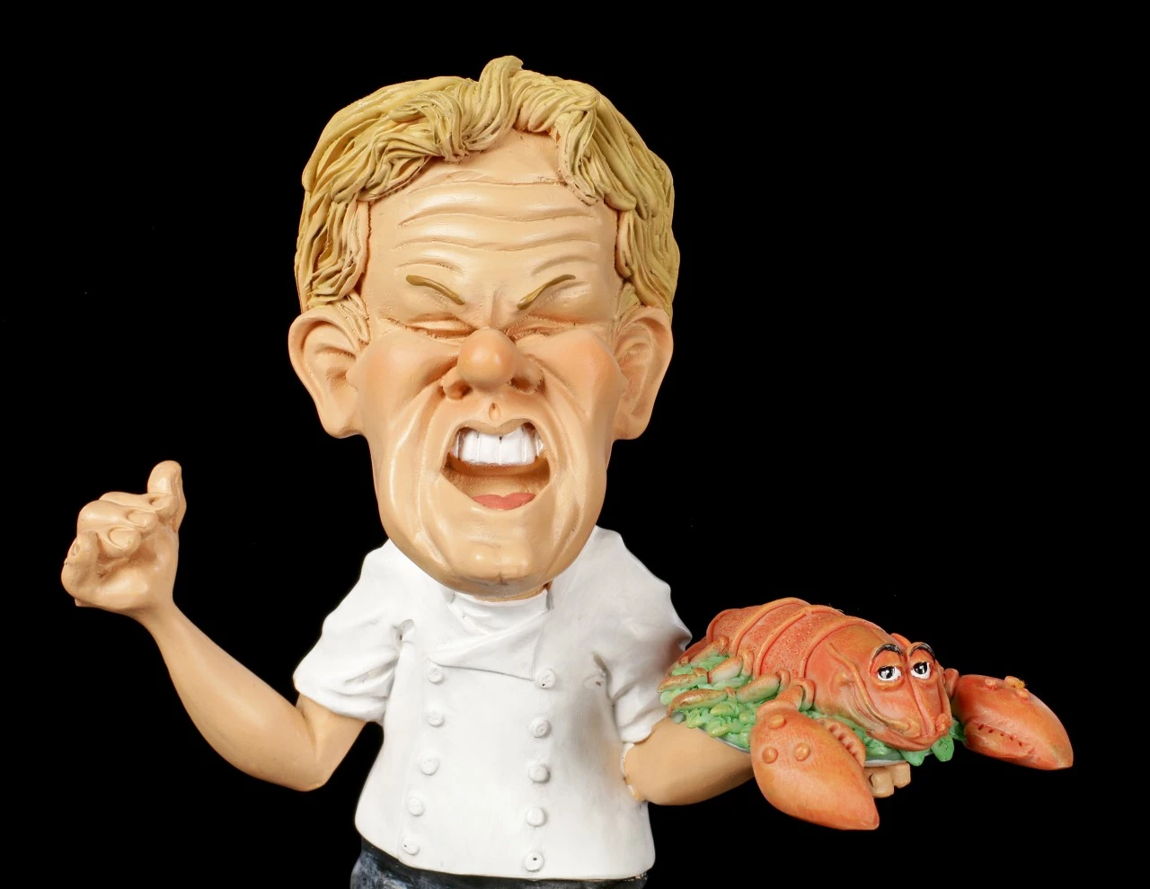 Der Chefkoch zeigt stolz seinen Hummer. Er macht seinen Job sichtlich aus Leidenschaft. Die Funny Job Figur aus Kunststein (Polyresin) wurde im lustigen Karikatur Stil gehalten und wurde liebevoll handbemalt.