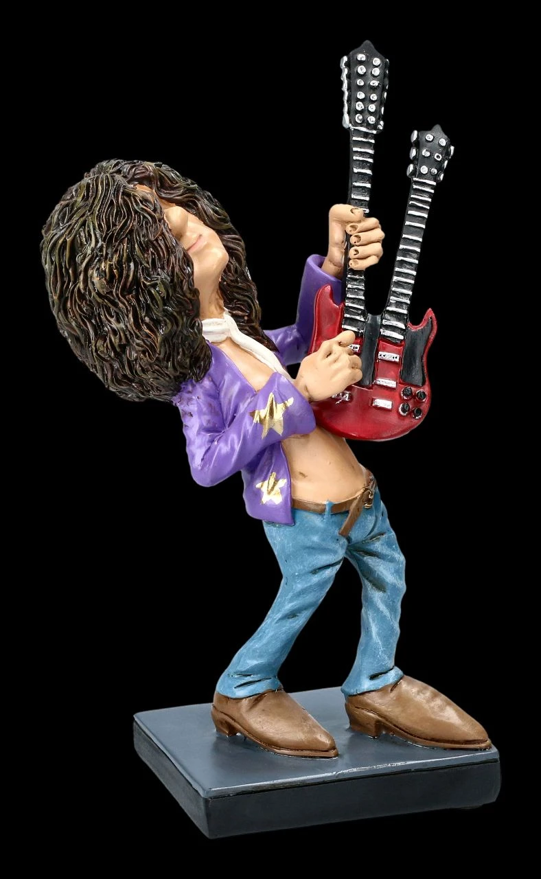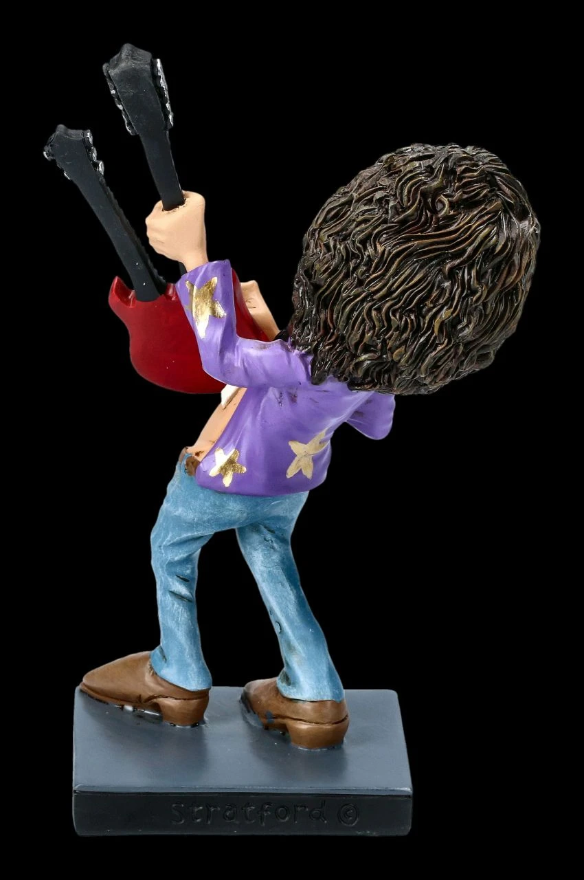 Bei seinem Auftritt hört er nichts – er konzentriert sich nur auf seinen Riff, mit dem er sein Publikum immer wieder zu Begeisterungsstürmen hinreißt. Mit Jimmy hat Warren Stratford wieder einmal sehr lustig den Charakter eines Berufsstandes erfasst. Ob jemand bereits Gitarrist in einer Band ist oder werden möchte – diese witzige, aus handbemaltem Kunststein (Polyresin) hergestellte Funny Job Figur des Rockstars Jimmy mit der Höhe von 18 cm, der Breite von 10 cm und der Tiefe von 6 cm ist das perfekte Geschenk für jeden Musiker oder jedem, der davon träumt, auf den Bühnen der Welt zu stehen. Sammler der lustigen Funny Job Figuren können mit anderen Figuren aus unserem Shop gleich eine Band zusammenstellen.