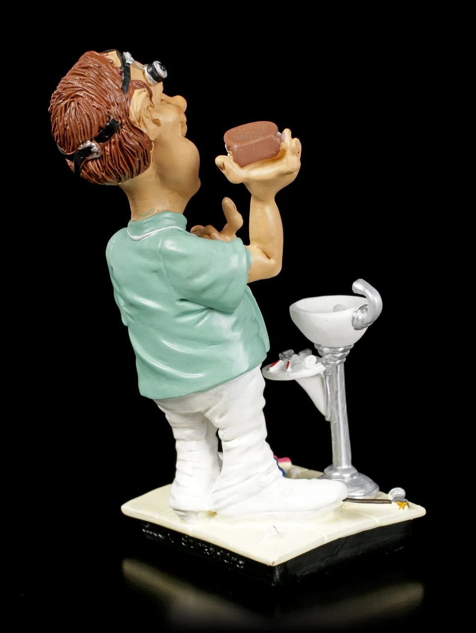 „Immer schön die Beißerchen gut putzen!“ Der lustige Zahnarzt von Warren Stratford aus der Funny Jobs Serie zeigt seinem neuen Patienten, wie man richtig die Zähne putzt und das geht am besten mit Hilfe eines Gebisses. Die originelle Arzt Figur aus handbemaltem Kunststein (Polyresin) ist ein witziges Geschenk für einen tollen Zahnarzt, der sich mit seinen Patienten viel Mühe gibt. Weitere tolle Funny Job Figuren gibt es in unserem Shop.
