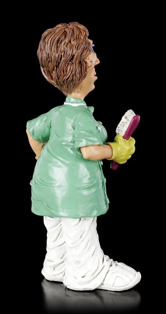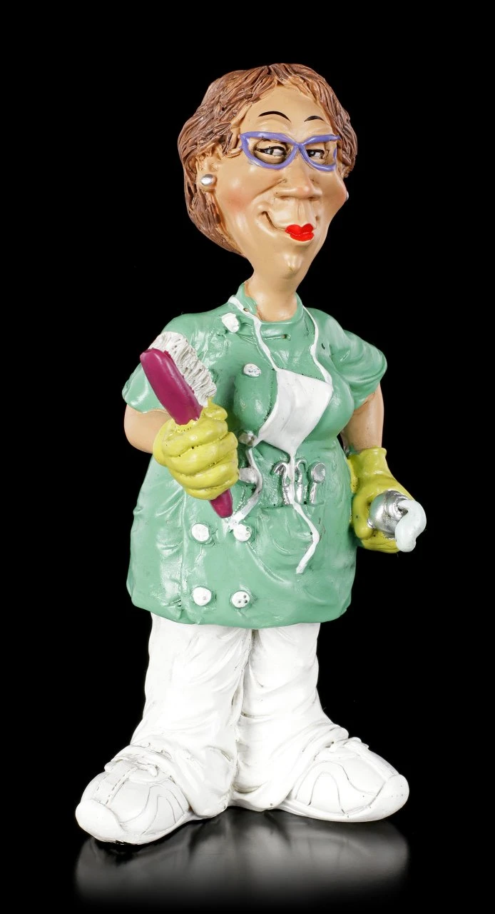 Aus der Serie Funny Jobs ist diese witzige Zahnarzthelferin Figur mit Zahnbürste. Immer schön brav die Zähne putzen scheint die junge Dame zu sagen. Denn dann ist es bei der Zahnreinigung gleich ganz schnell vorbei. Die handbemalte Kunststein Figur ist das perfekte Geschenk für eine tolle Zahnarztpraxis.