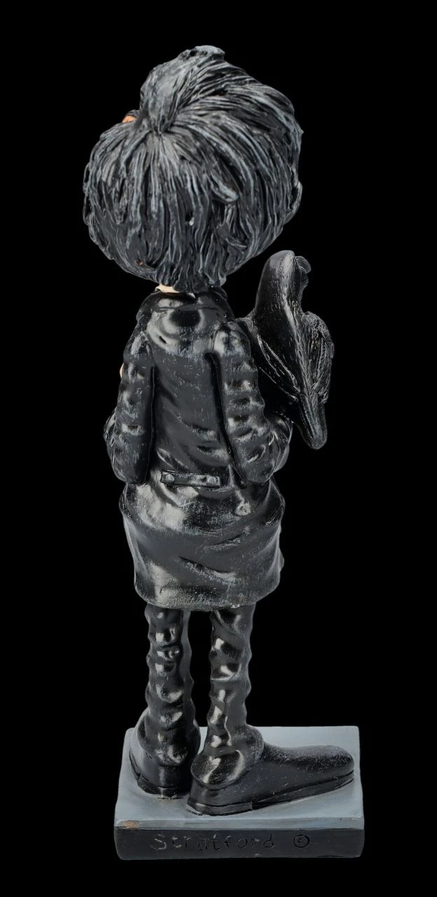 Er ist der Poet, der den Raben ein unvergessliches Denkmal gesetzt hat – Edgar Allan Poe. Und natürlich darf der Rabe bei dieser unvergleichlichen Karikatur des Dichters nicht fehlen. Der Künstler Warren Stratford, der jeden mit seinen humorvollen Karikaturen begeistert, hat die Persönlichkeit wieder einmal perfekt eingefangen. Seine Figuren werden von ihm persönlich in aufwändiger Handarbeit entworfen und dann aus liebevoll handbemaltem Kunststein (Polyresin) hergestellt. Die 19 cm hohe, 6 cm breite und 8 cm tiefe humorvolle Figur des Dichters gehört einfach in jede Sammlung und ist daher ein perfektes Geschenk. Zahlreiche weitere Karikaturen von Warren Stratford sind übrigens in unserem Shop zu finden.