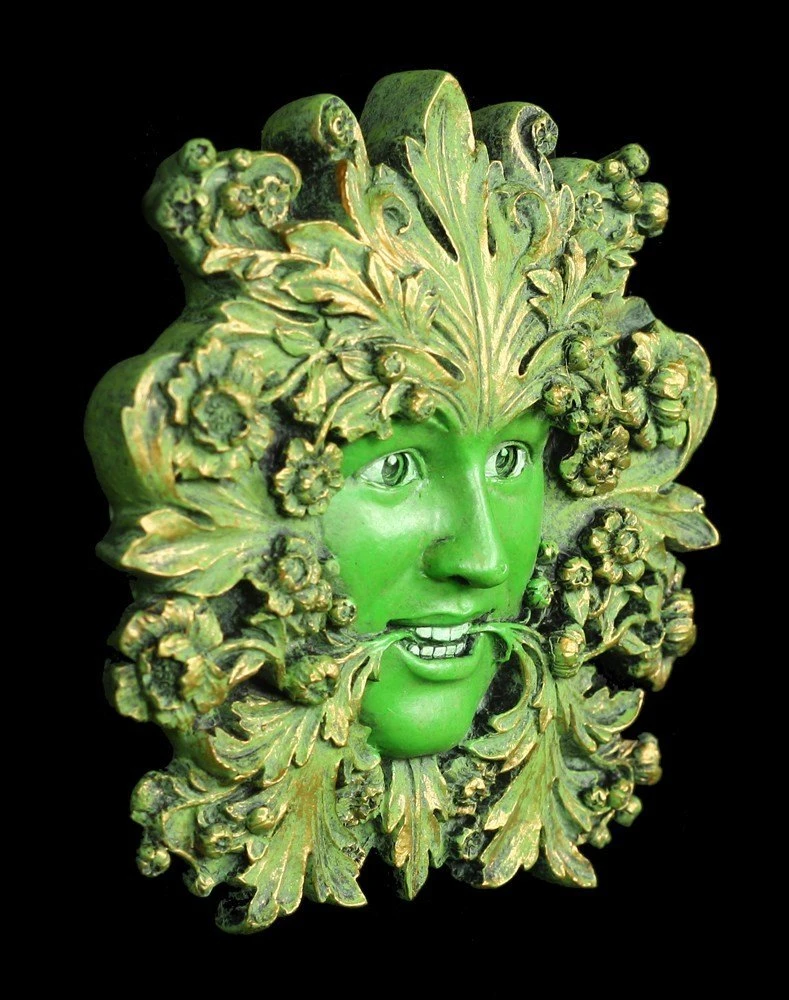 Die Grüne Herrin lächelt gütig den Betrachter an. Dieses wunderschöne Wandrelief stammt vom Künstler David Lawrence. Die Garten Wanddeko kann das ganze Jahr im draußen bleiben.