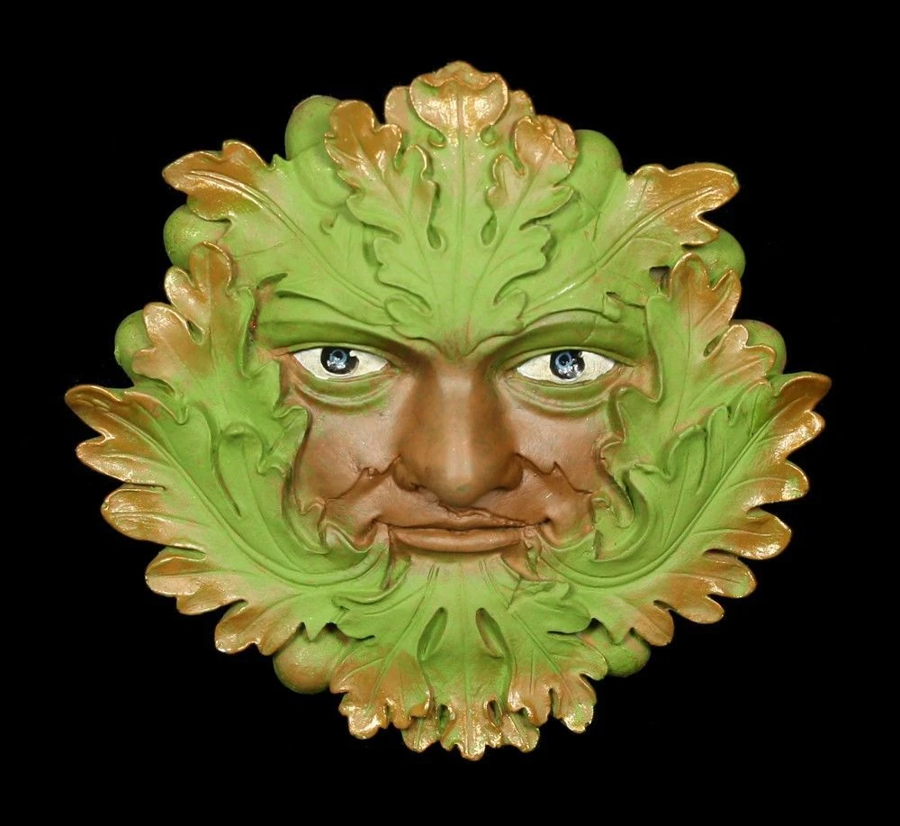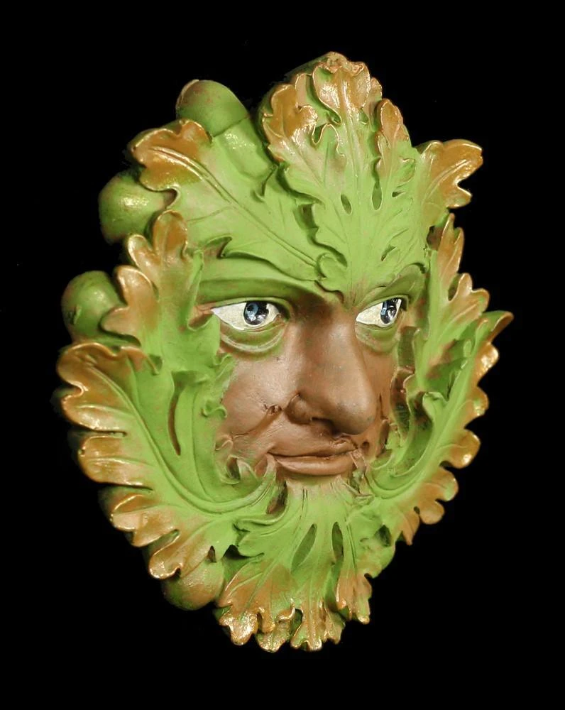Mit ernsten Augen blickt der Baumgeist in den Garten. Das fantasievolle Gartenwandrelief ist ein Werk von dem bekannten Künster David Lawrence. Das Wandrelief wurde handbemalt und kann das ganze Jahr draußen bleiben.