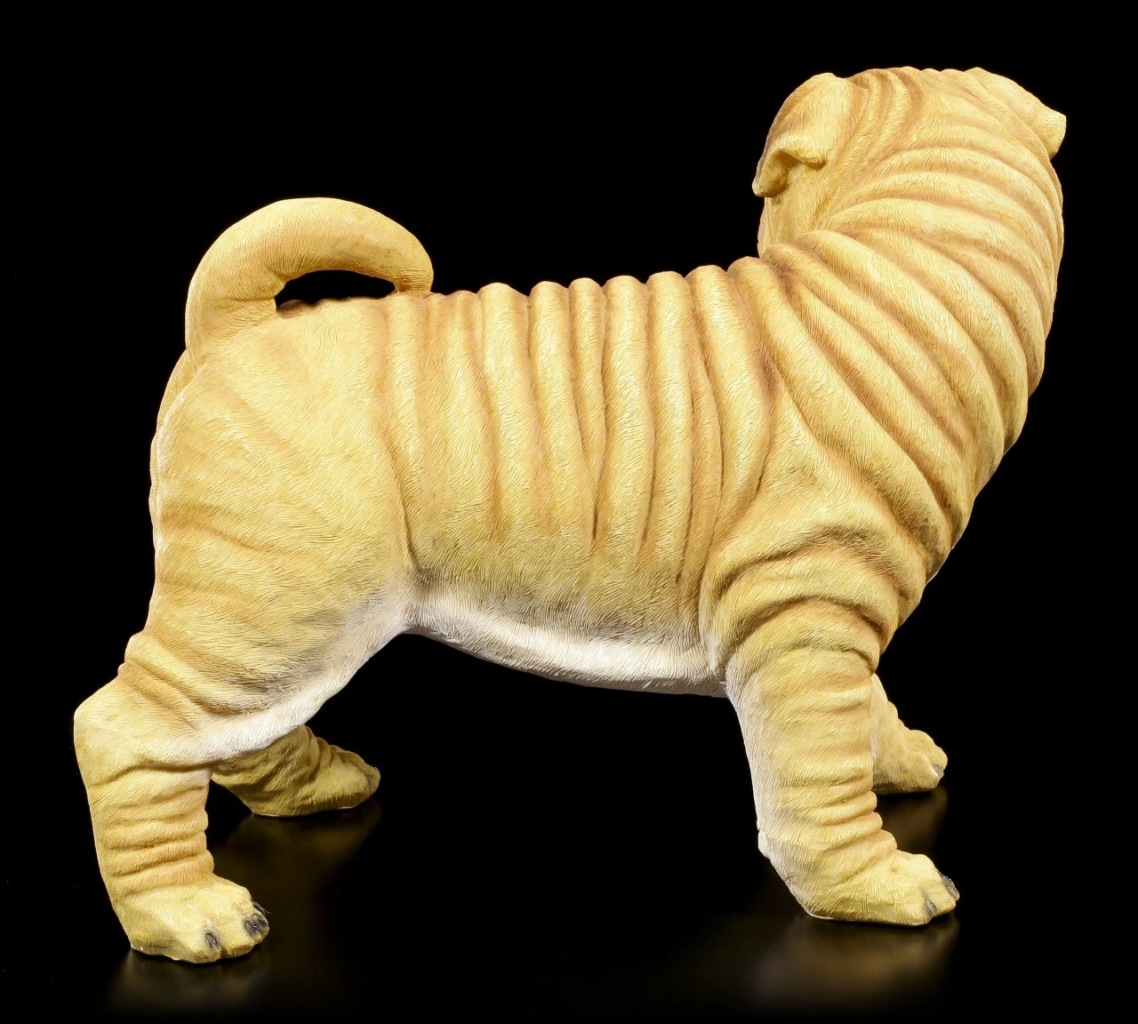 Der süße chinesische Faltenhund, besser bekannt unter dem Namen Shar-Pei, ist noch ganz jung und frech. Es wird noch etwas Zeit vergehen, bis er in seine Haut gewachsen ist. Schaut er nicht putzig aus? Jeder Ihrer Gäste wird Sie um Ihren neuen Mitbewohner in Form dieser tollen Hunde Figur aus liebevoll handbemaltem Kunststein (Polyresin) beneiden.