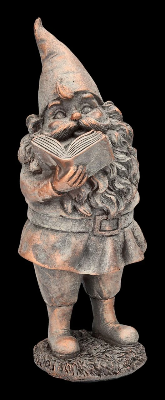 Also diesen nostalgischen Gartenzwerg stellt man doch am besten gleich in die Leseecke oder in ein Bücherregal. Dieser fantastische Gartenzwerg sieht aus, als würde er gerade eine lustige oder auch spannende Geschichte vorlesen. Der niedliche, 20 cm hohe, 7 cm breite und 9 cm tiefe Gartenzwerg wurde sorgfältig aus bronzefarbenen Kunststein (Polyresin) gefertigt. Für alle, die selbst gerne lesen, ist dieser putzige Gartenzwerg eine richtig hübsche Deko und er passt auch gut in das Schaufenster eines Buchladens oder eines Blumenladens. Er ist aber auch ein tolles Geschenk für liebe Freunde und Leseratten.