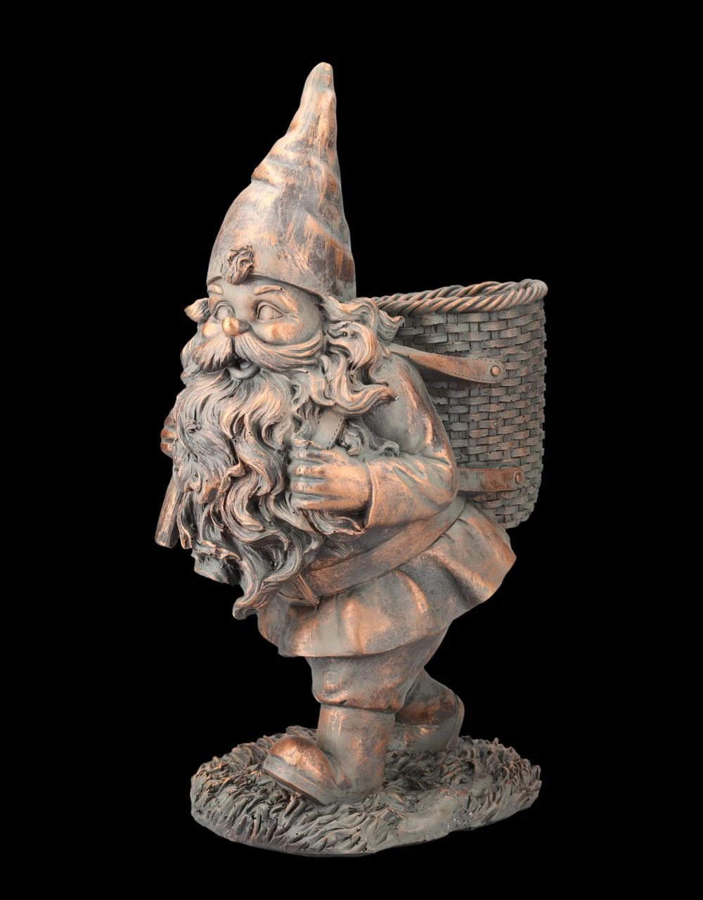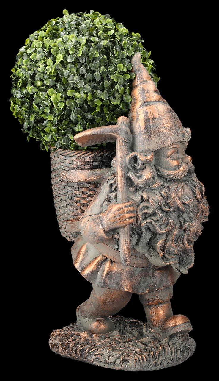 Fröhlich, als würde er eilen, um für Schneewittchen eine schöne Pflanze aus dem Garten oder Wald auszugraben, schreitet der Gartenzwerg voran. In der geflochten aussehenden Kiepe auf seinem Rücken, die er wie einen Rucksack trägt, kann er einen kleinen 10 cm hohen Blumentopf mit dem Durchmesser von 11 cm aufnehmen. Der Rucksack hat kein Ablaufloch. Der wunderbar nostalgisch aussehende Gartenzwerg wurde sorgfältig aus Kunststein (Polyresin) gefertigt und liebevoll von Hand bemalt. Mit der beeindruckenden Höhe von 45,5 cm, der Breite von 21 cm und der Tiefe von 26 cm wird der hübsche Kerl garantiert nicht übersehen. Der romantische Gartenzwerg mit dem Rucksack als Pflanztopf ist – vielleicht auch gleich mit einer passenden Pflanze – ein wunderbares Geschenk und sollte im Garten, auf der Terrasse oder dem Balkon einen Ehrenplatz bekommen.