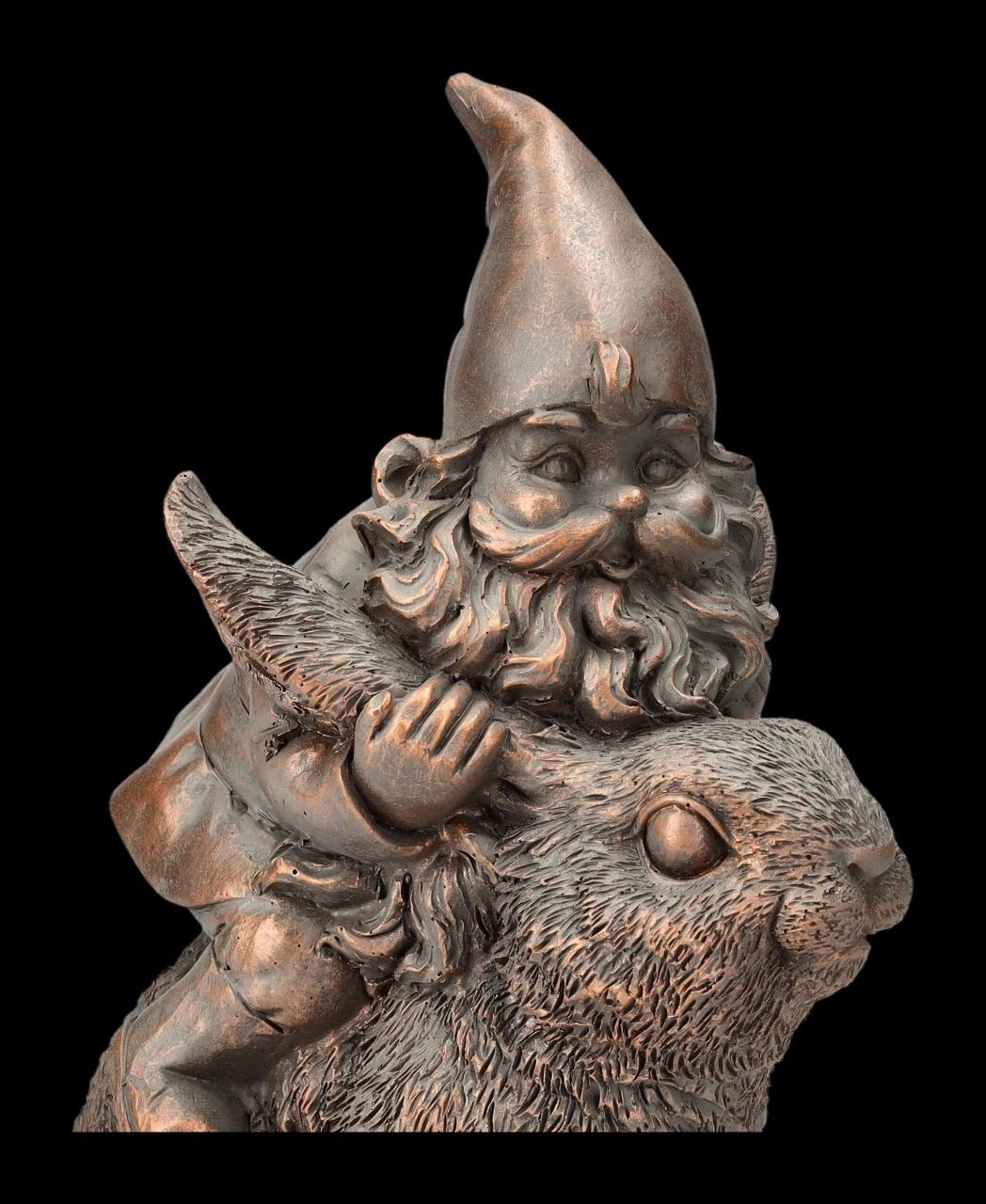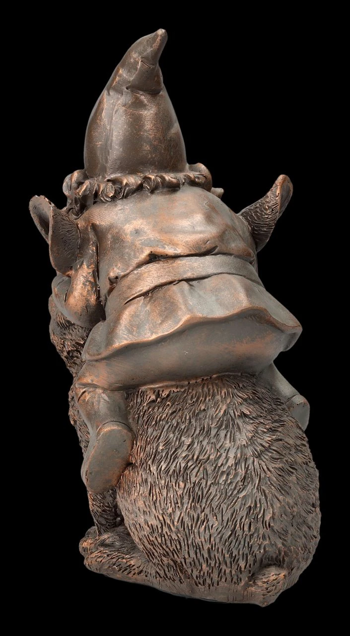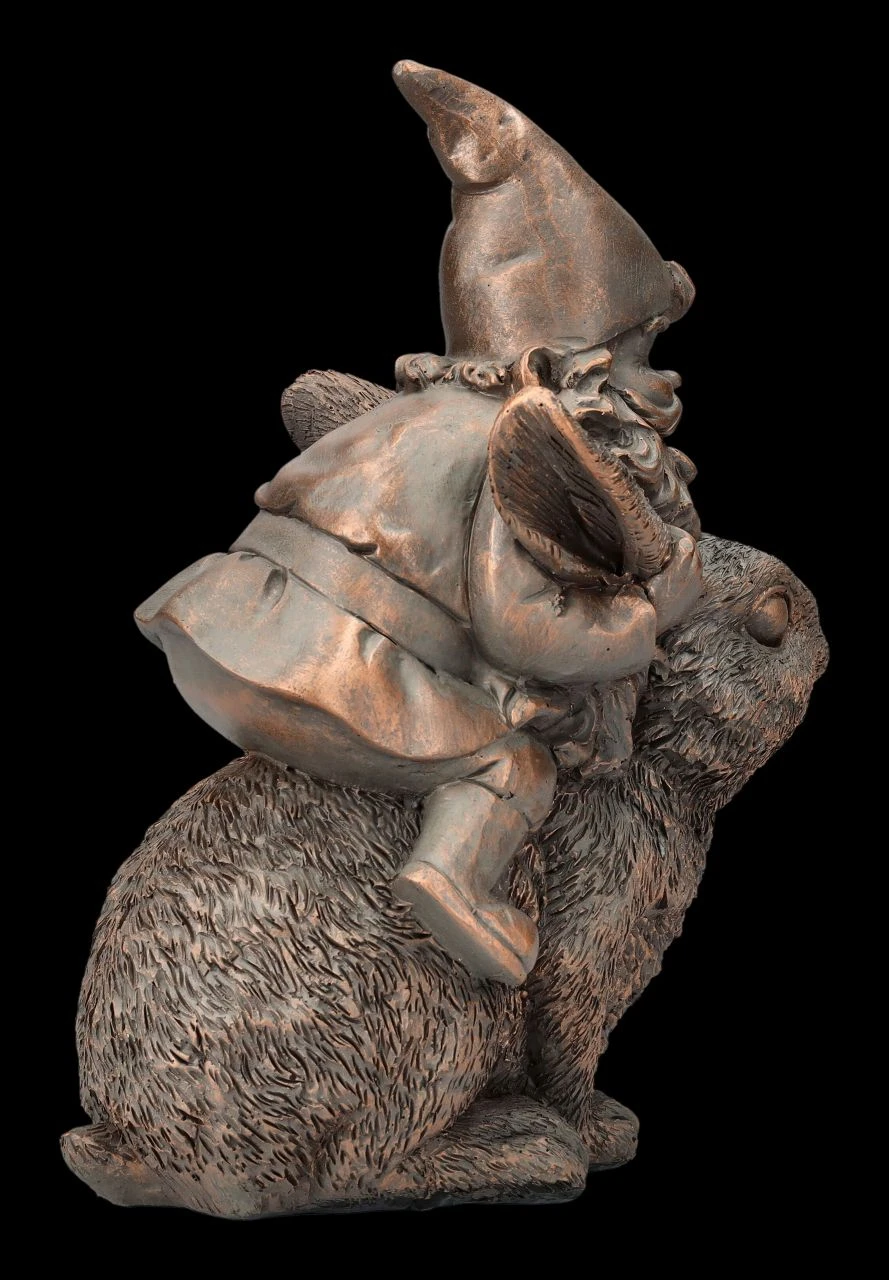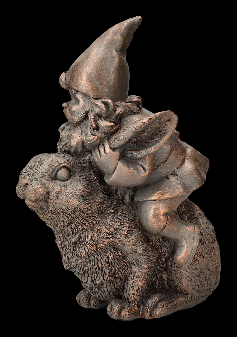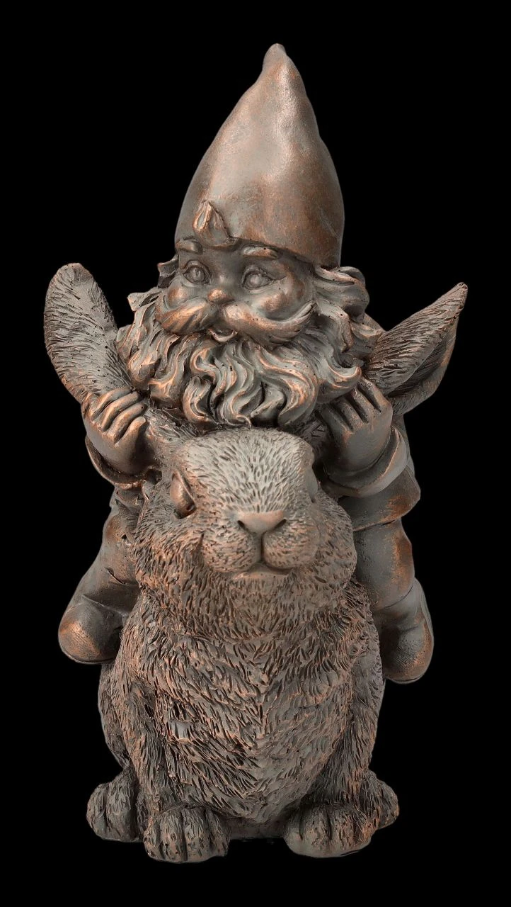Da hat sich der Gartenzwerg aber ein tolles Reittier aus seinem Stall ausgewählt. Allerdings scheint der Hase nicht unbedingt bereit für einen Ausritt zu sein… Mal nicht in bunt, sondern eher edel zurückhaltend wurde der auf einem Hasen reitende Gartenzwerg aus Kunststein (Polyresin) liebevoll in Bronzetönen handbemalt. Die 21 cm hohe, 11 cm breite und 16 cm tiefe Gartenzwerg-Figur wird in jedem Blumenbeet zum Hingucker.