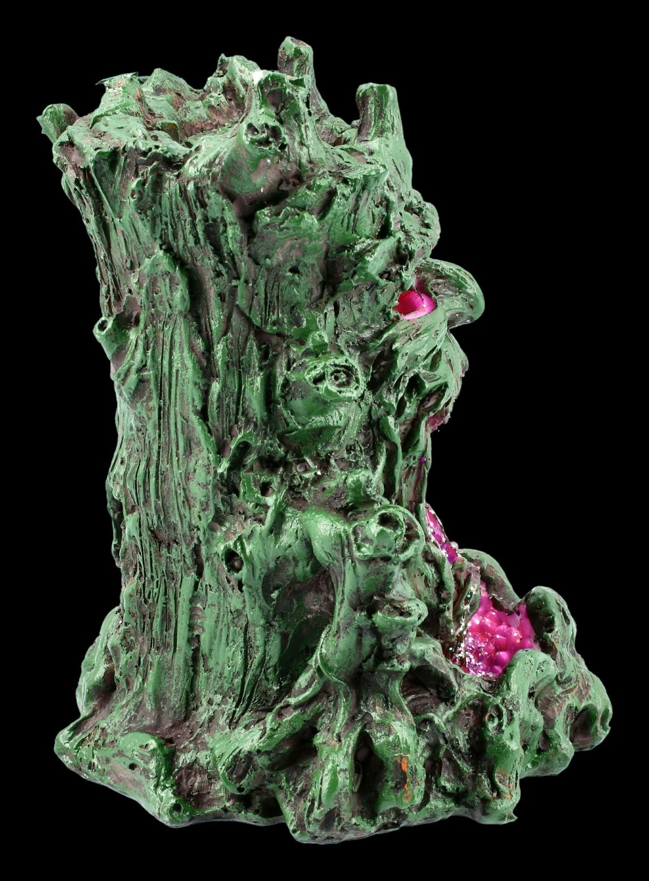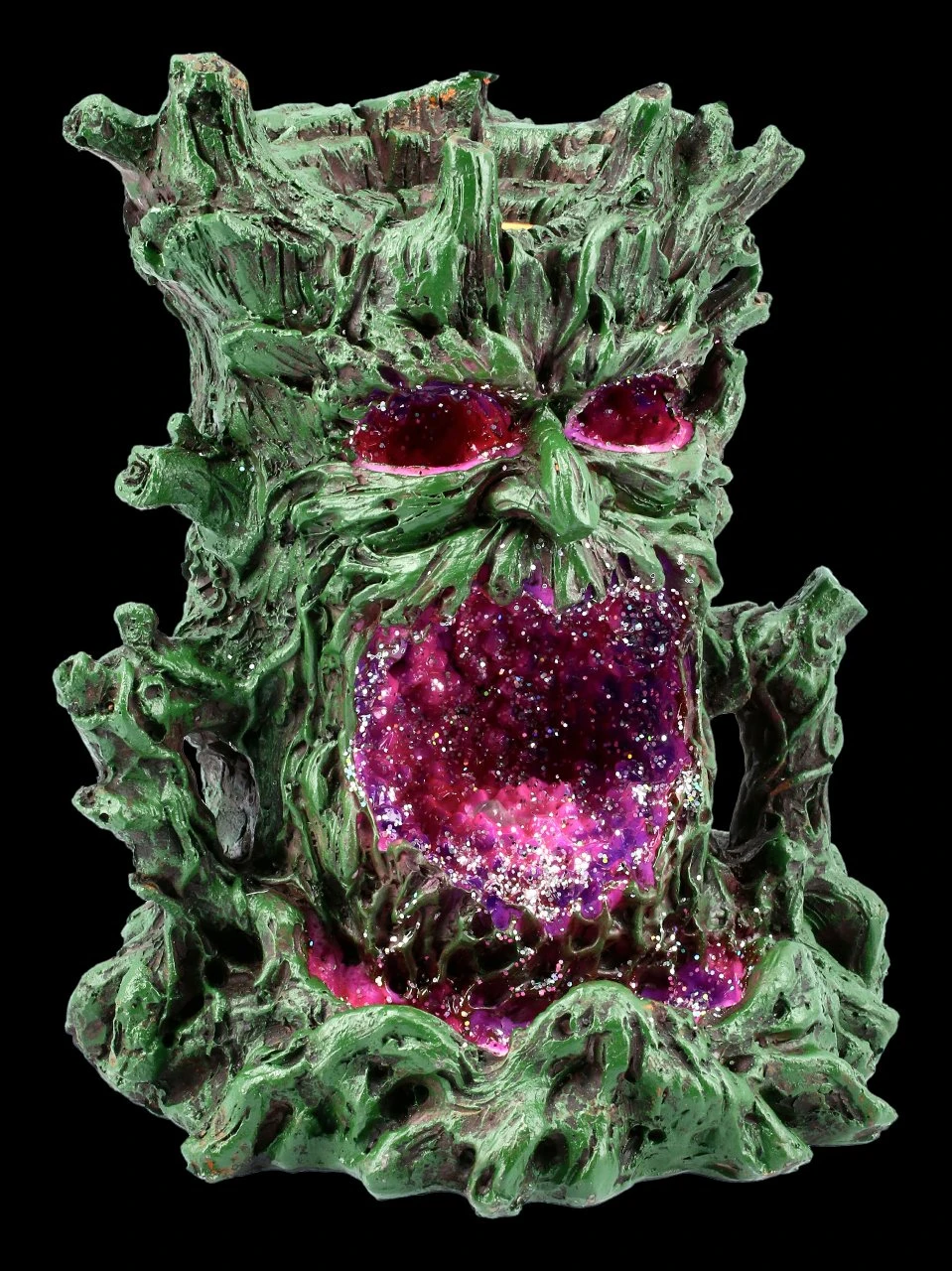 Der mystische Greenman hat seine Rinde geöffnet und gibt den Blick auf glitzernde Kristalle frei. Der Betrachter kann dabei zusehen, wie sich der Rauch an dem Kristall herunter schlängelt. Der umwerfende Baumgeist Backflow Räucherkegel Halter Crystal Ent ist ein tolles Geschenk für einen Sammler. Der handbemalte Baum aus Kunststein (Polyresin) ist mit und ohne Räucherkegel ein Hingucker.