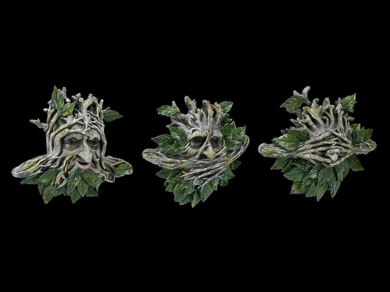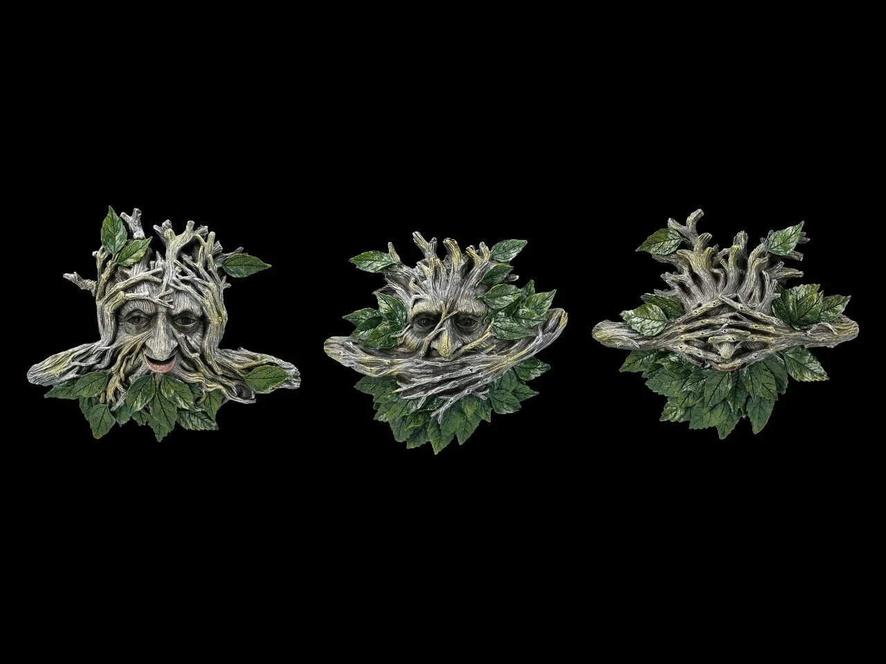 Als Gott und Hüter der Natur zeigt Greenman auf diesem Wandrelief-Set, dass er Geheimnisse für sich behält und nichts Böses hört, spricht und sieht. Man soll sich aber nicht täuschen, wenn es gegen die Harmonie von Geist und Natur geht, kann er durchaus einschreiten. Dieses schöne handbemalte Greenman Wandrelief 3er Set ist aus detailliert gefertigtem Kunststein (Polyresin) gefertigt. Es hat eine Höhe von 22 – 23,5 cm, eine Breite von 24,5 – 27,5 cm und eine Tiefe von 6,5 – 7,5 cm und hat auf der Rückseite eine Möglichkeit zum Hängen. Das Greenman Wandrelief ist eine wunderbare Dekoration für alle, die der Natur verbundenen sind.
