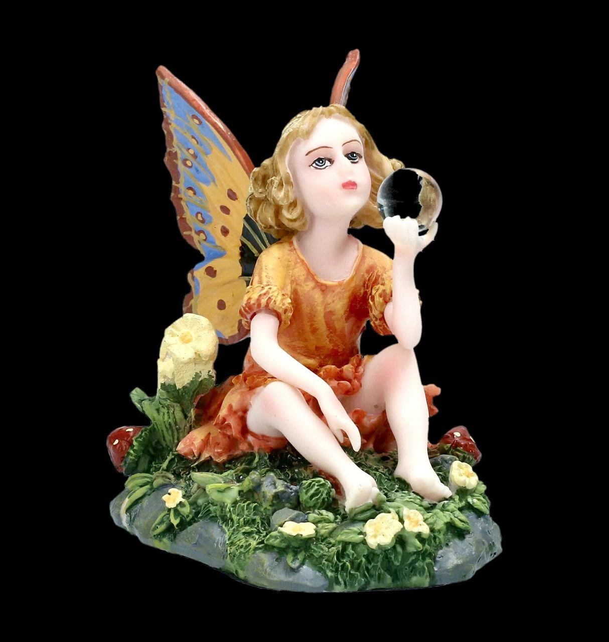 Nachdenklich sitzt die kleine süße Elfe auf der Blumenwiese und denkt nach, was sie ihrer Zauberkugel entlocken kann. Das kleine Elfenkind ist aus sehr liebevoll und detailliert handbemaltem Kunststein (Polyresin) gefertigt.Sie ist 8,0 cm hoch, 6,0 cm breit und 4,0 cm tief. Die kleine Elfe in der Blumenwiese ist ein süßes Mitbringsel und das sicher nicht nur für Elfen-Sammler.