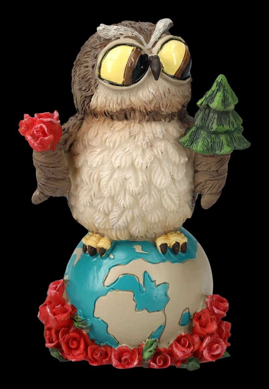 Die Erde liegt in einem Bett aus Rosenblüten und darauf steht hoch aufgerichtet eine Eule mit einer Rosenblüte in der einen und einem Tannenbaum in der anderen Hand. Eulen gelten ja als sehr weise und vielleicht sollte uns diese lustige Eulen-Figur, die das Element Erde darstellt, einfach nur zeigen, wie wichtig es ist, die schönen Dinge der Natur zu schützen. Die 11 cm hohe, 7 cm breite und 5,5 cm tiefe Eulen-Figur aus handbemaltem Kunststein (Polyresin) ist für alle Eulen-Sammler, die vielleicht auch das Element Erde in ihrem Horoskop haben, ein tolles Geschenk.