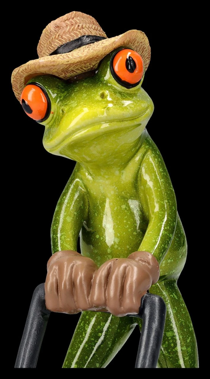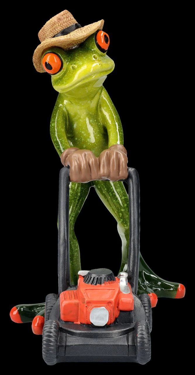 Vielleicht kann er höher hüpfen, wenn das Gras etwas niedriger ist… Warum sonst sollte sich der witzige Frosch seinen Hut als Sonnenschutz aufsetzen und den Rasenmäher schnappen? Die liebevoll handbemalte Frosch-Figur ist aus Kunststein (Polyresin) gefertigt und 16,5 cm hoch, 11 cm breit und 5,5 cm tief. Für Gärtner, die ihren Rasenmäher entweder selten oder leidenschaftlich gerne und oft einsetzen, ist der witzige Frosch ein humorvolles Geschenk.