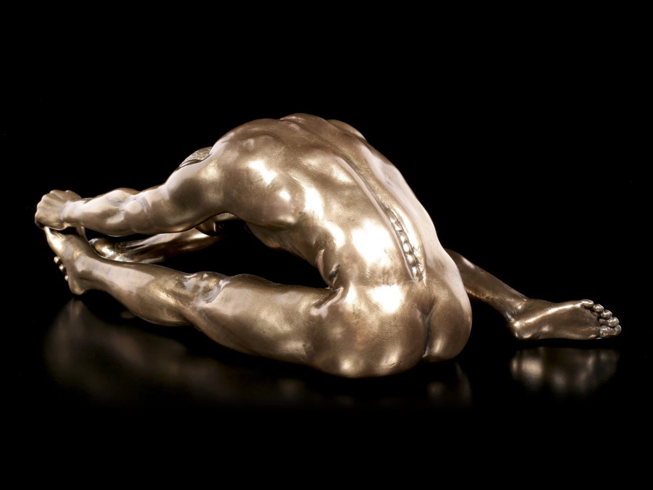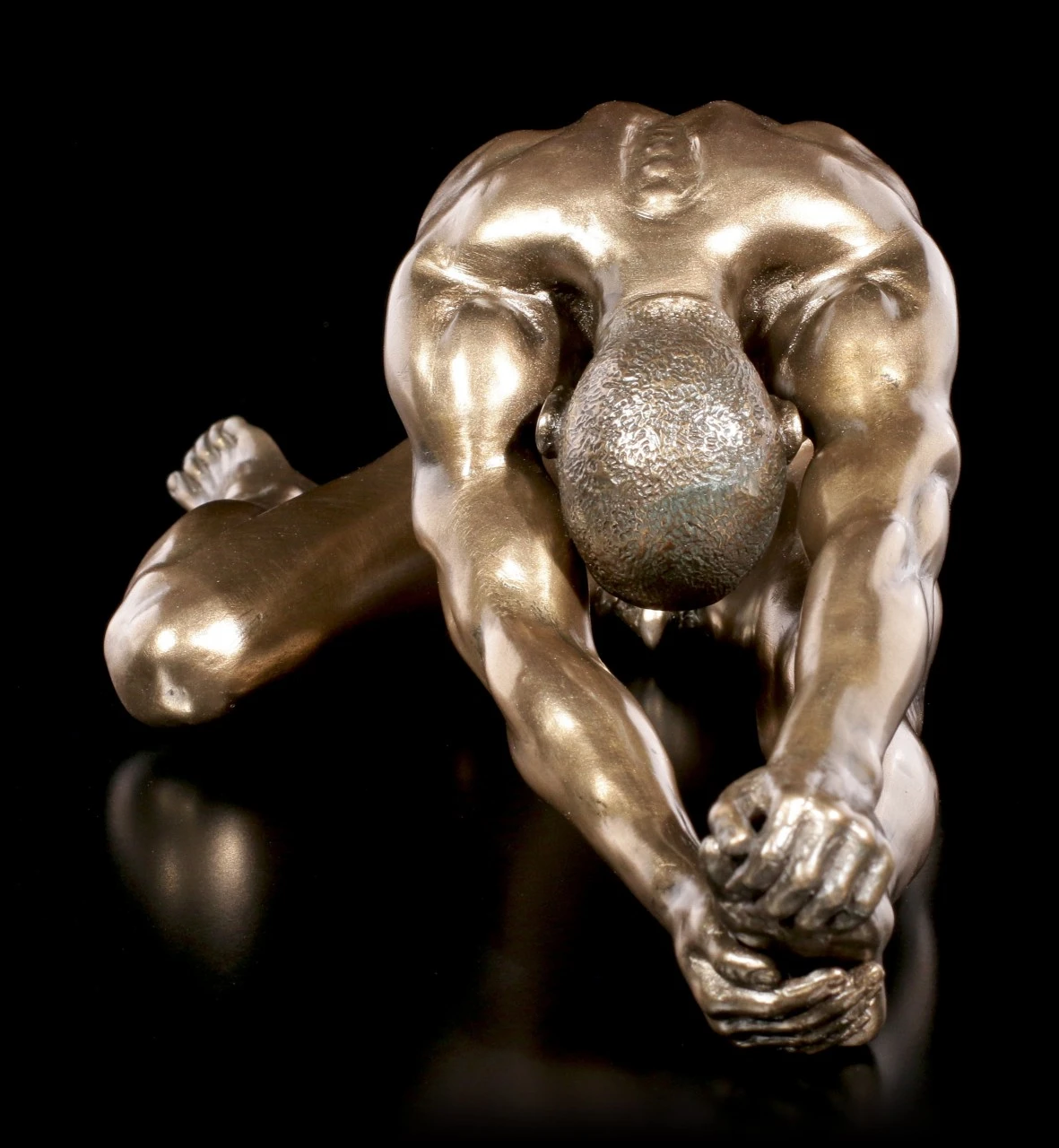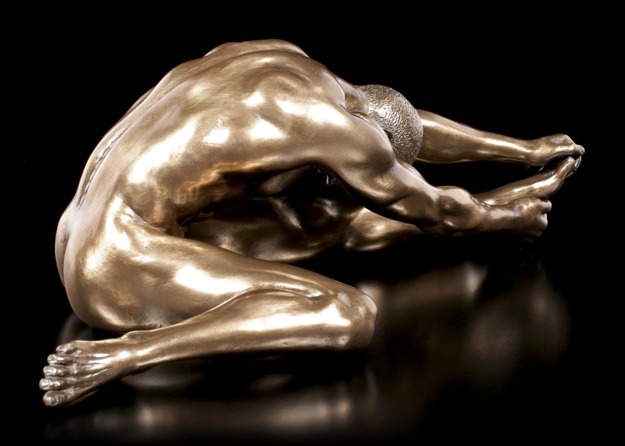 Dieser männliche Akt lässt uns bei seinen sinnlichen Dehnungsübungen teilhaben. Sein muskulöser Körper kommt anmutig zur Geltung und durch die Bronzierung wird die Figur von Veronese zu einem attraktiven Kunstwerk.