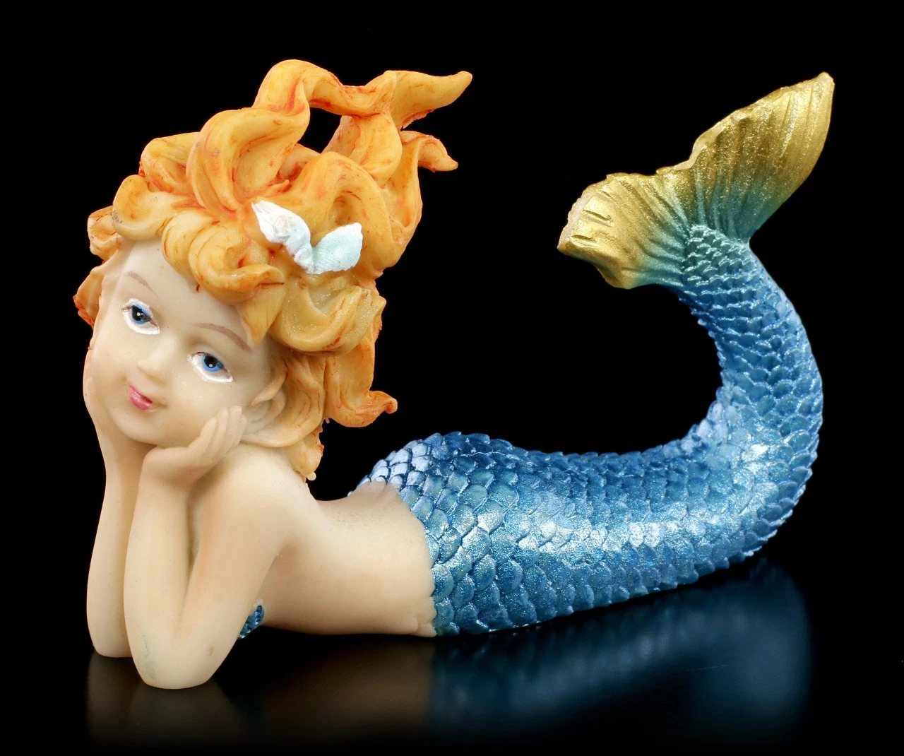 Die kleine Luana wartet am Meeresgrund liegend auf ihre Freunde. Ihre schönen Haare scheinen in der Meeresströmung zu wehen. Die Figur wurde liebevoll handbemalt und ausgearbeitet.