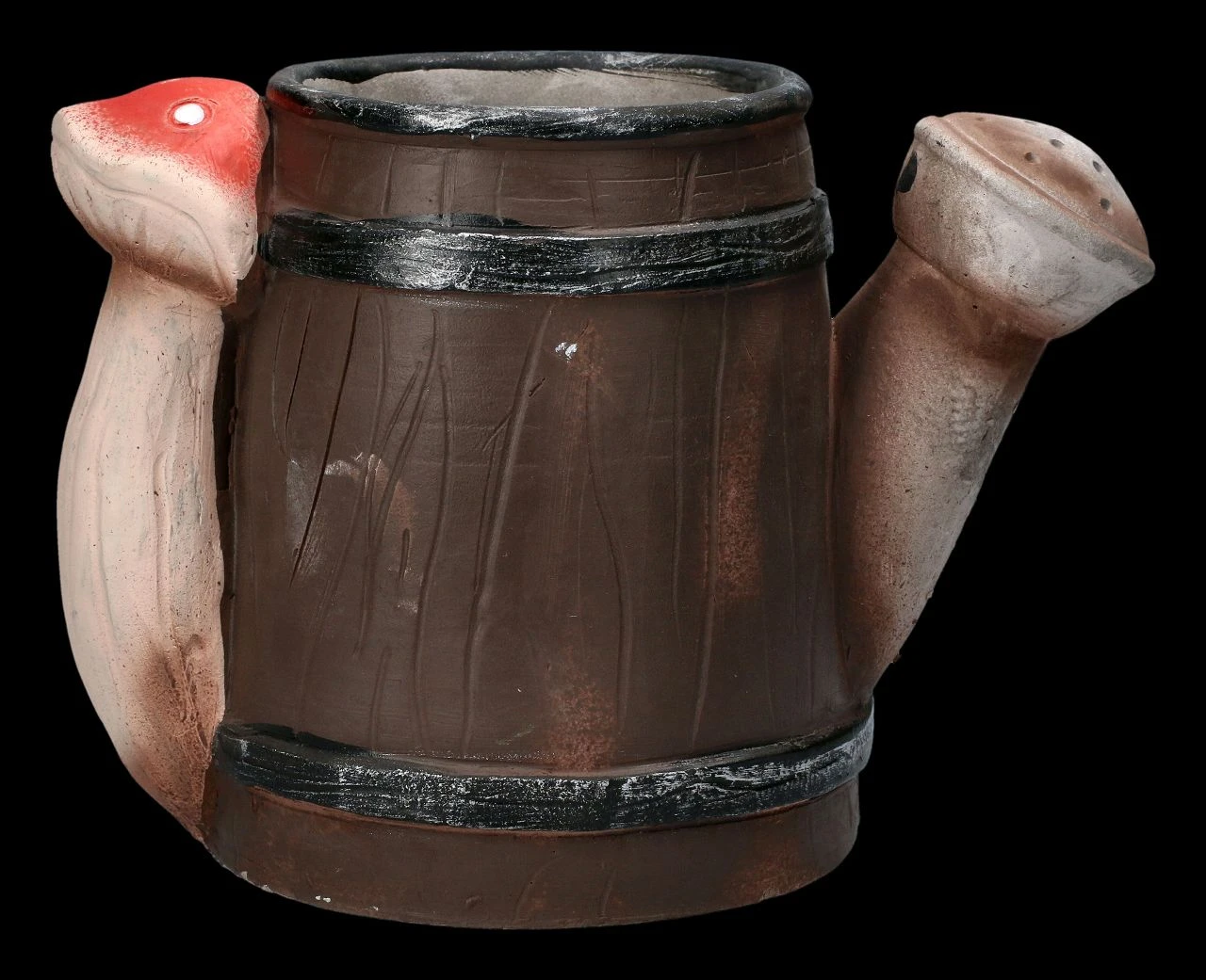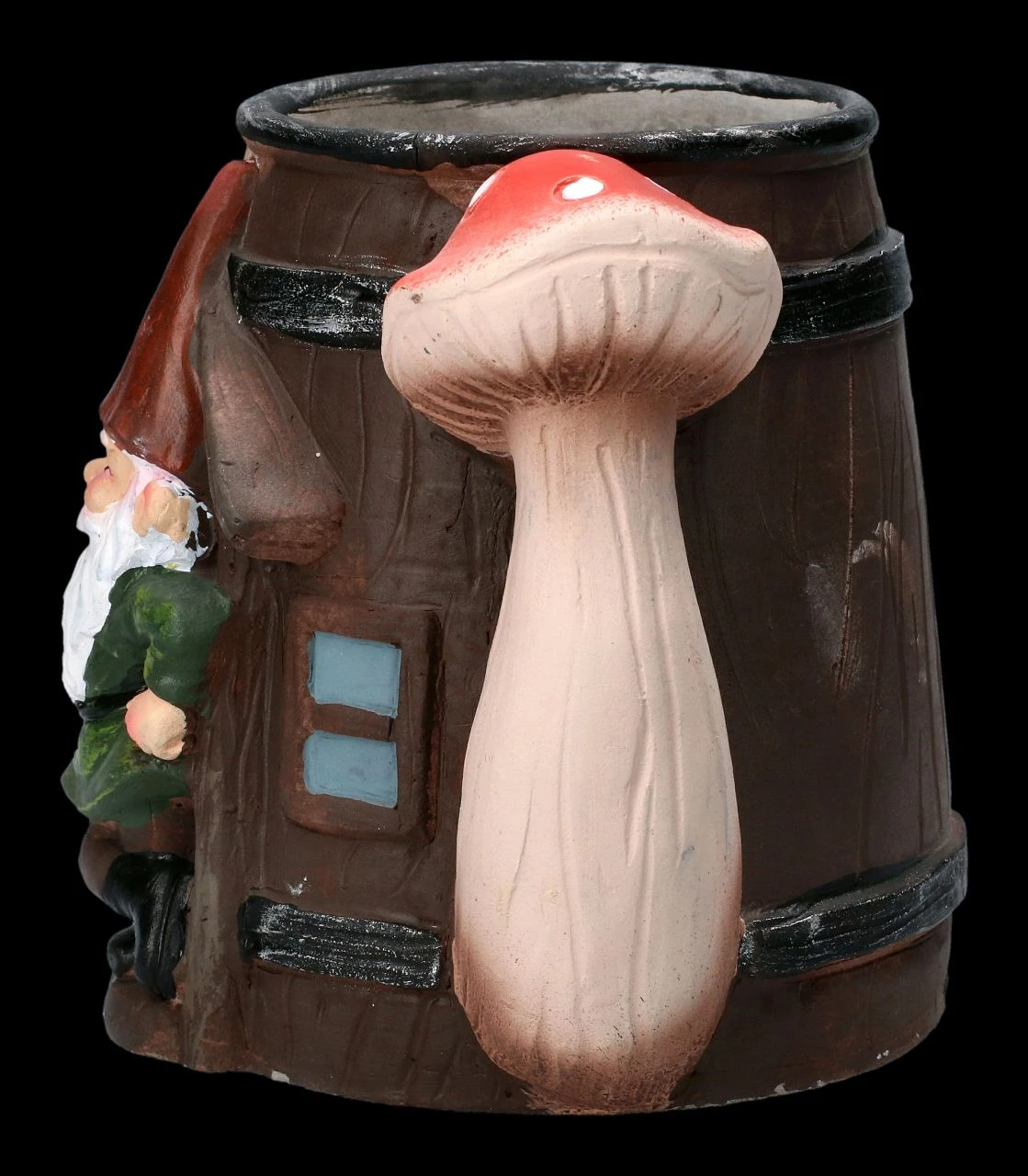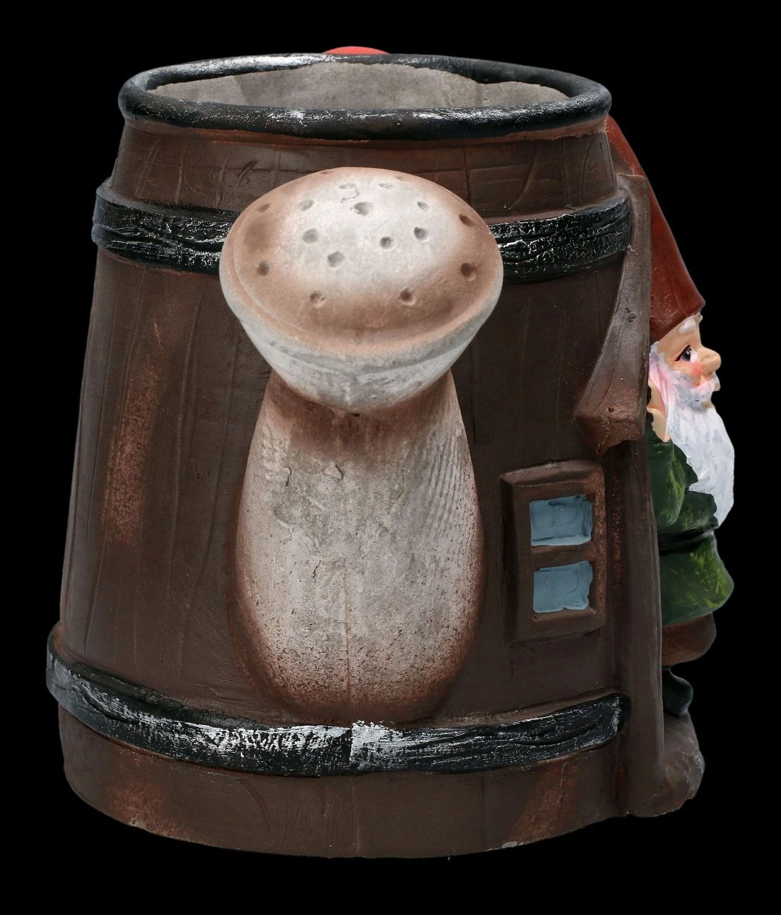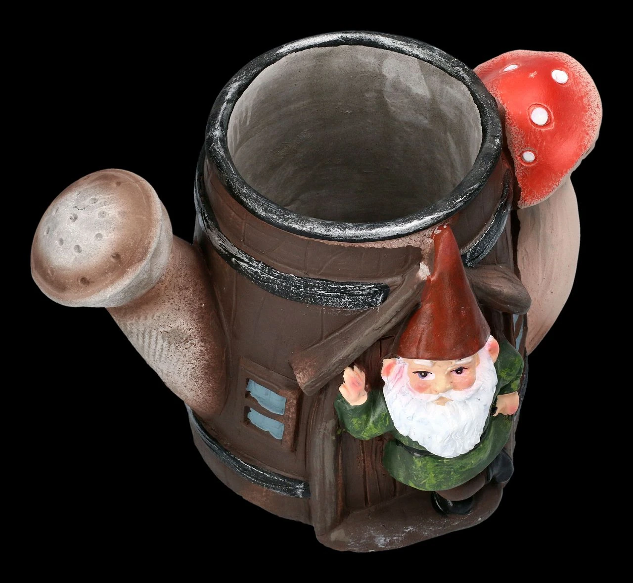 Eine Gießkanne bildet den originellen Pflanztopf mit dem lässig in der Tür lehnenden Gartenzwerg, der freundlich grüßend aus der offenen Tür winkt. Der lustige Pflanztopf ist aus liebevoll handbemaltem Kunststein (Polyresin) gefertigt und 14 cm hoch, 19 cm breit und 13 cm tief. Er kann ein Blumentöpfchen mit einem Durchmesser bis 7,5 cm aufnehmen und hat kein Ablaufloch. Der Pflanztopf mit dem Gartenzwerg in der Gießkanne ist eine echt witzige Deko für jede Blumenbank und ein nettes Geschenk, wenn man damit seine Blumen überreicht.