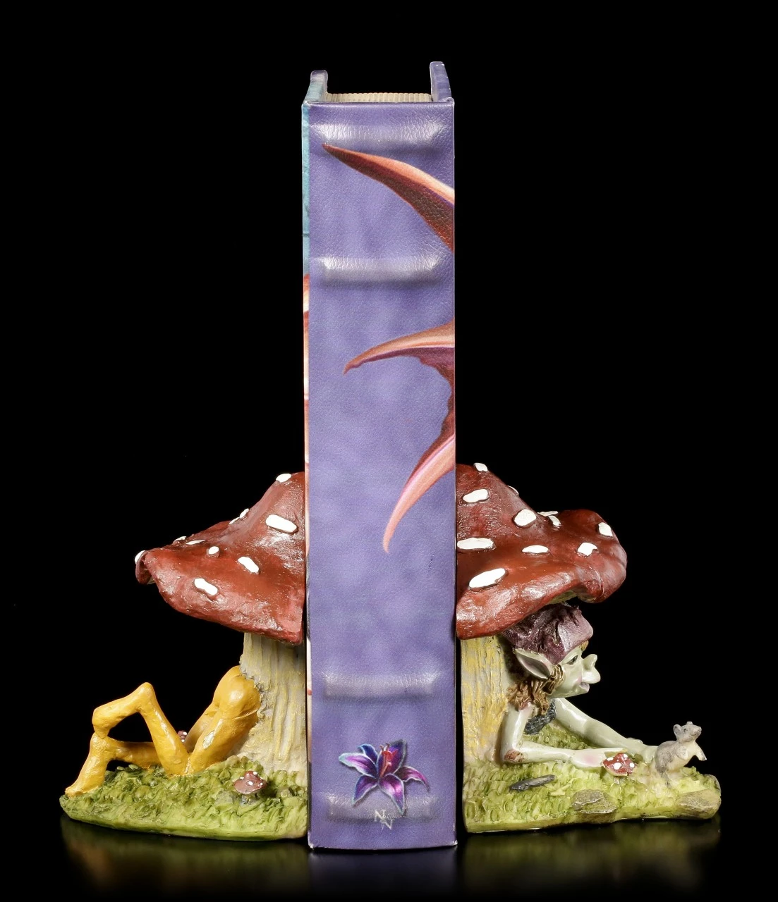 Diese fantasievollen Buchstützen werden zum Highlight in Ihrem Bücherregal. Der kleine Pixie Kobold klettert durch einen Pilz und somit auch durch alle Bücher. Die tollen Buchstützen sind aus hochwertigem Kunststein (Polyresin) geschaffen und liebevoll handbemalt.